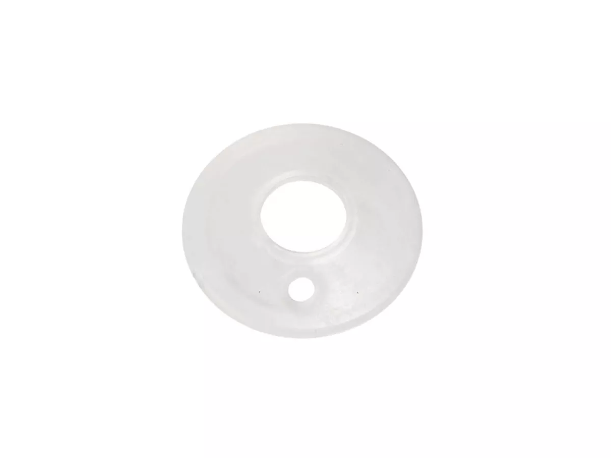 Weißer Staubschutz aus Kunststoff für die Kupplungsdrehfeder an der Entkupplungswelle an handgeschalteten Puch Z50 Motoren.Diese Abdeckplatte dient dem Schutz der Kupplungs-Drehfeder vor Schmutz und Feuchtigkeit.