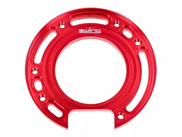 Sehr hochwertige Adapterplatte für links- und rechtsdrehende Motoren zur Verwendung einer MVT-Innenrotor-Magnetzündung. Die präzise gefertigte Grundplatte besteht aus rot eloxiertem Aluminium.