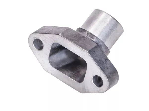 Tuning-Ansaugstutzen aus Aluminium. Der Ansaugbogen ermöglicht es einen 17mm Bing SRE Vergaser an Zündapp Belmondo (Typ 247) Mopeds anzubauen.