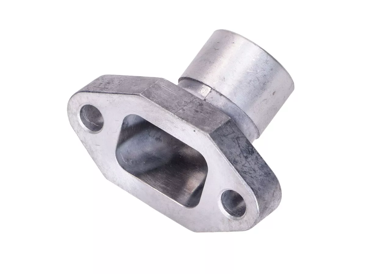 Tuning-Ansaugstutzen aus Aluminium. Der Ansaugbogen ermöglicht es einen 17mm Bing SRF Vergaser an Zündapp Belmondo (Typ 247) Mopeds anzubauen.