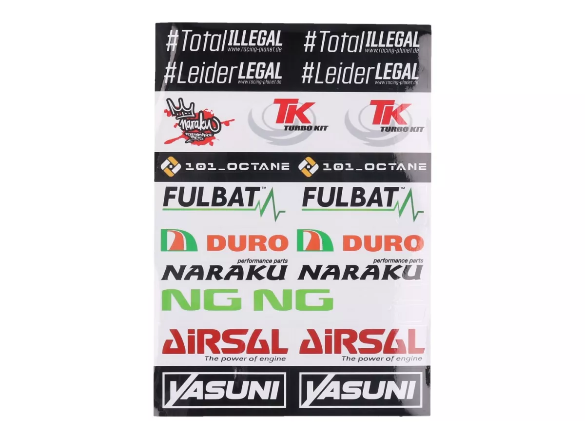 Farbiges 23-teiliges Aufkleber Sponsoren Kit: Die Herstellerlogos sind auf durchsichtiger Folie gedruckt und jeweils 2x enthalten; deshalb perfekt für das Bekleben rechts und links am Fahrzeug.