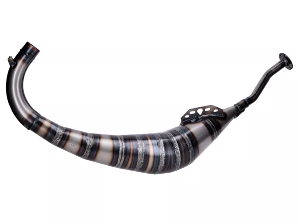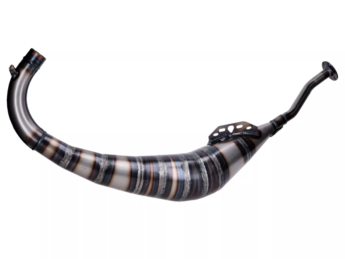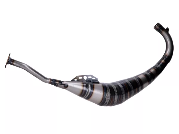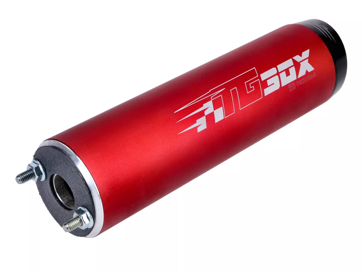 Die Tecnigas E-Box Anlage ist ein Racing Auspuff für originale Zylinder und 70er Sportzylinder. Die Resonanzlängen dieser Auspuffanlage sind für solche Zylinder optimal abgestimmt. Der handgeschweißte Look verleiht der Anlage absoluten Racing Charakter, der in edlem Titan-Look eloxierte Endschalldämpfer rundet die Sache ab. Die innere Konstruktion der Resonanzkammer und die gute Schalldämmung des Endschalldämpfers ermöglichen einen angenehmen Deeptone Geräuschpegel.