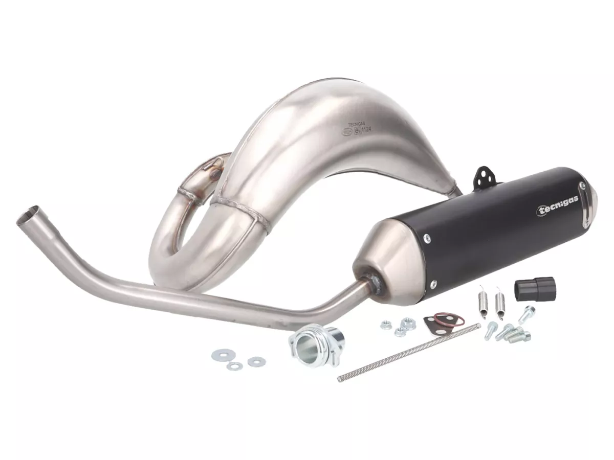 Tecnigas E-NOX Evo wird mit der neuesten Version des schwarz eloxierten Endschalldämpfers geliefert und entfaltet volle Leistung zwischen 7000 und 10500U/min. Dieser Auspuff eignet sich ideal zum Tunen für 50ccm Original- und 70ccm Sportzylinder.