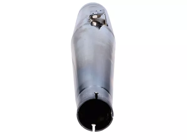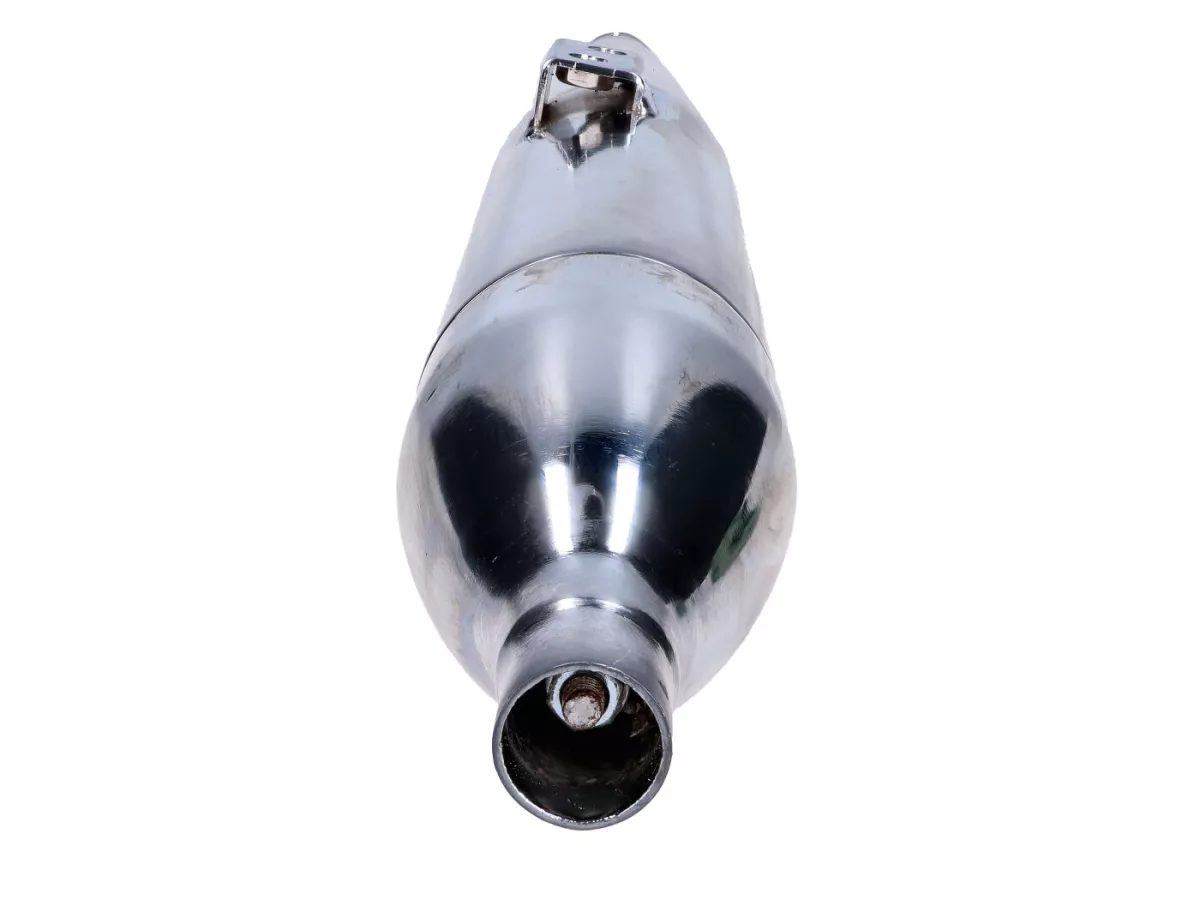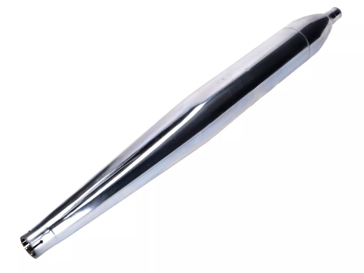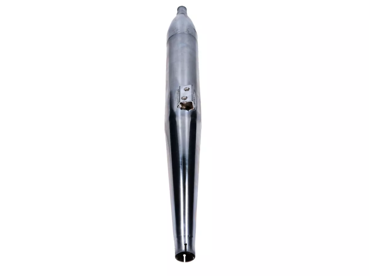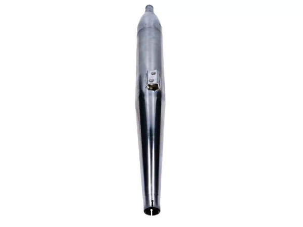 Zigarrenform Auspuff ohne sichtbare Schweißnaht - sehr hochwertig verarbeitet mit 28mm Anschluss und angeschweißtem Halter passend für Kreidler Florett K 54 Eiertank und viele andere.