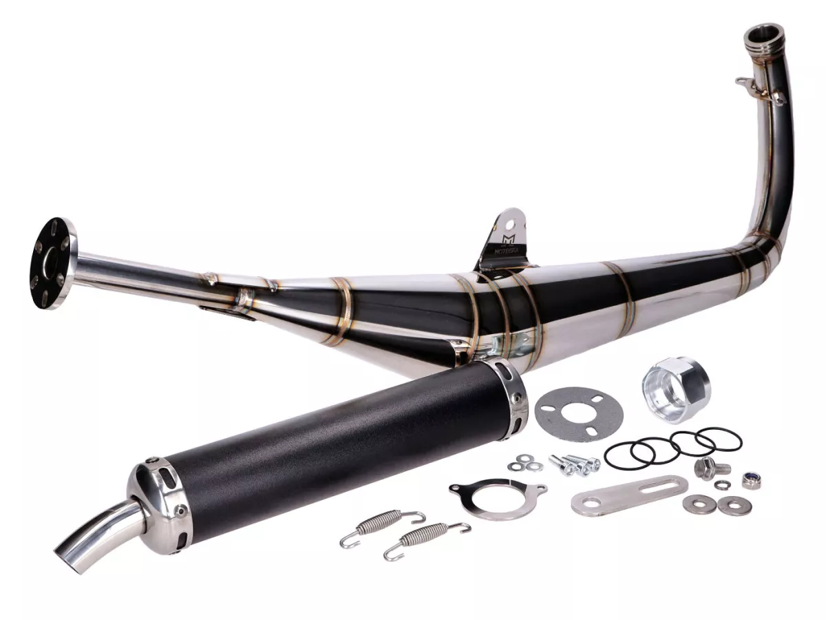 Motegra Rennauspuff für Zylinder von 60ccm bis 110ccm Hubraum passend für Simson S50, S51, S70.