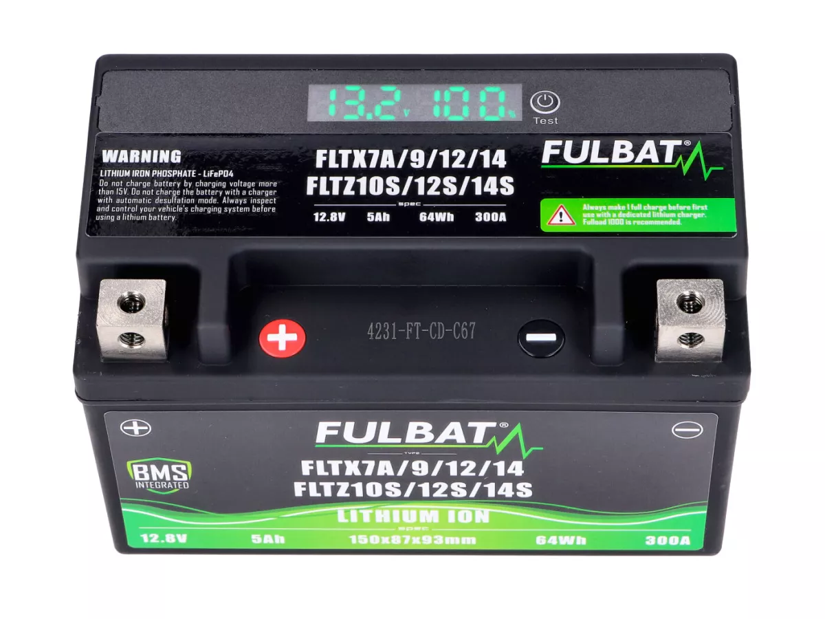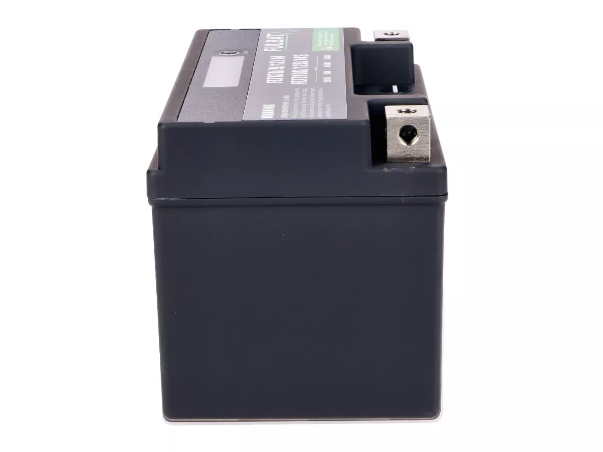 Lithium-Eisenphosphat (LiFePO4) Batterie, die speziell für Motorräder, Roller, ATVs, SSVs, Wasserfahrzeuge und Schneemobile entwickelt wurde. Sie zeichnet sich durch ihre sofortige Einsatzbereitschaft und Wartungsfreiheit aus. Im Vergleich zu herkömmlichen Blei-Säure-Batterien ist sie deutlich leichter und bietet eine sehr hohe Kaltstartleistung. Dank des integrierten Batterie-Management-Systems (BMS) ist sie zudem äußerst sicher.