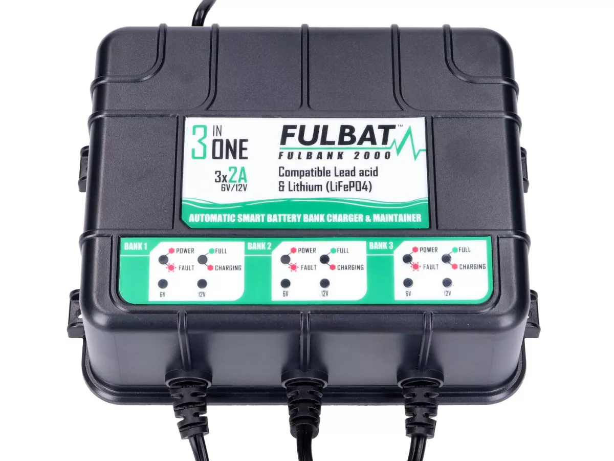 Die Fulbat Fulbank 2000 ist ein universelles Batterieladegerät mit dem bis zu 3 Batterien gleichzeitig geladen werden können. Die 100% automatische FULBANK 2000 ist daher ideal für Werkstätten, Lagerhäuser und bei einem größeren Fuhrpark geeignet.