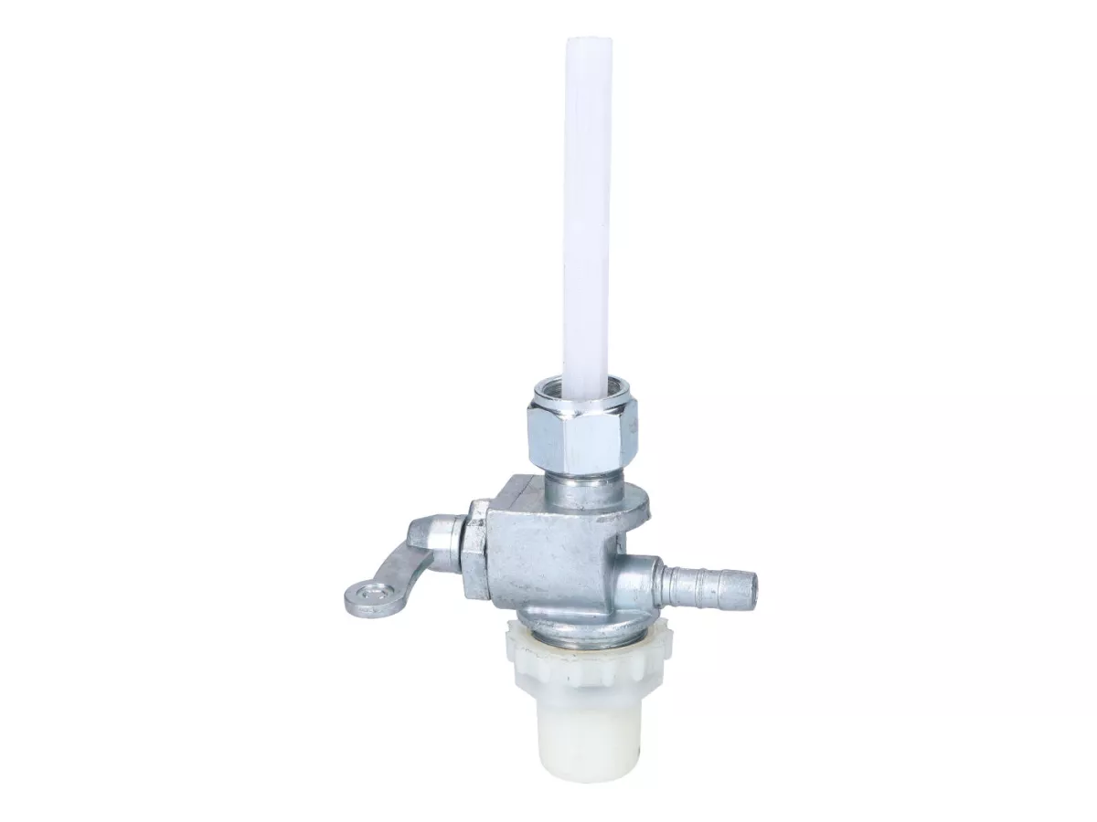 Manueller Benzinhahn M12x1,0 für Zündapp Mofas. Oftmals führt eine Fehlfunktion dieses Bauteils zu Startschwierigkeiten und Motoraussetzern während der Fahrt. Die Filter des Benzinhahnes sind kaputt oder der Durchlauf bereits verstopft und der Benzinhahn gibt den Kraftstoff nicht oder nur in unzureichendem Maße frei. Zur Behebung trägt nur der komplette Austausch bei.
