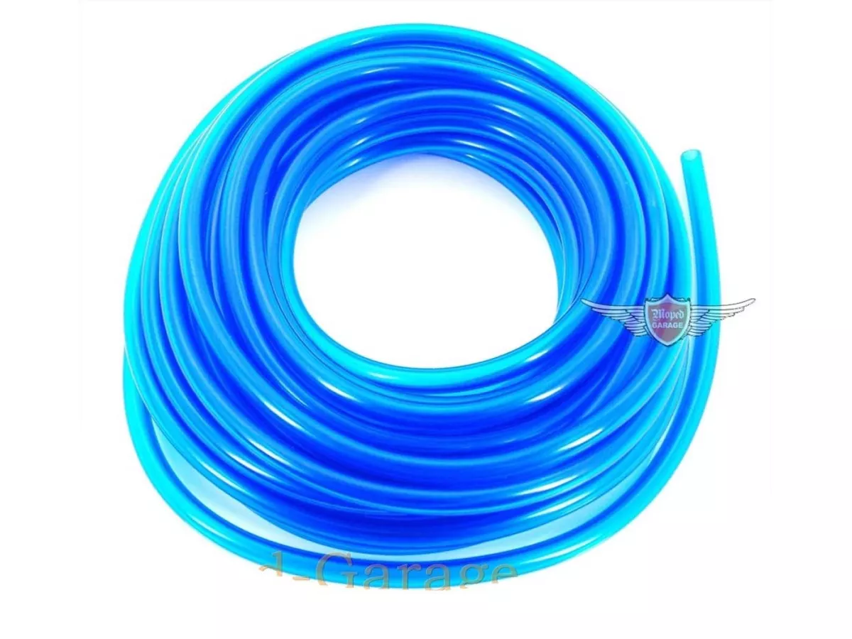 10m Rolle Benzinschlauch in Blau Transparent mit den Maßen 5 x 8 mm. Passend für verschiedene Modelle von Mofa, Moped und Mokick, wie Zündapp GTS, KS, C, CS, CX, Hai, ZD, Bergsteiger R, Combinette, Kreidler Florett RS, RMC, LF, LH, TM, Flory, MF, MP, Hercules Prima KX, GT, GX, M, K, MK, Puch Maxi, Monza, DKW, Miele, KTM und andere.