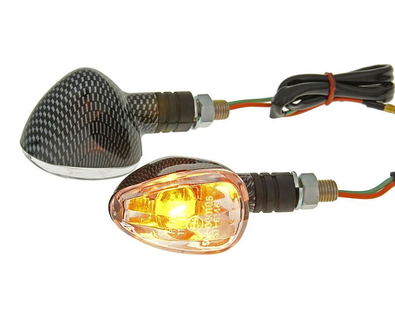 Die Blinker besitzen ein E-Prüfzeichen und dürfen somit legal im Straßenverkehr eingesetzt werden. Diese kurze Version ist ab Blinkerfuß 77mm lang.