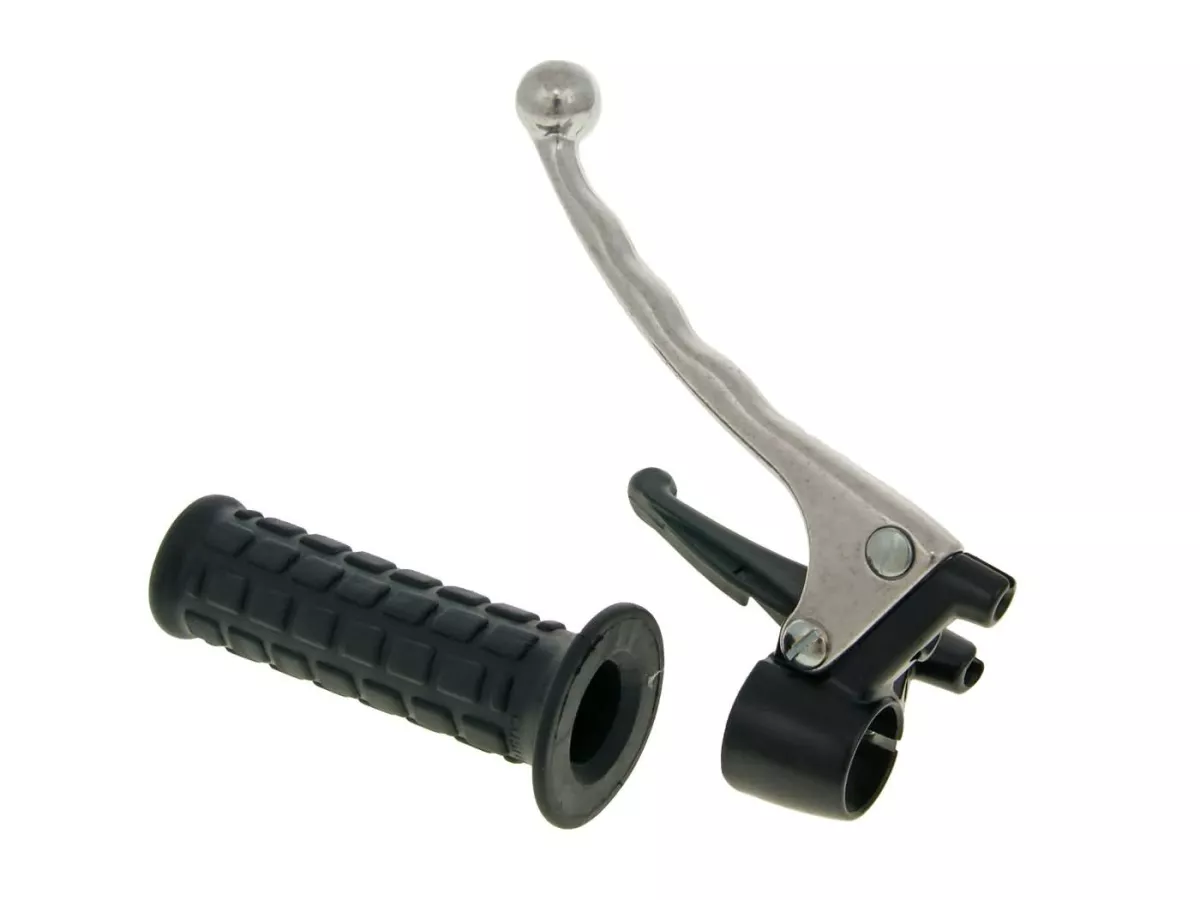 Linke Armatur mit Griffgummi, Brems- bzw. Kupplungshebel und Chokehebel passend für Puch Mofa.