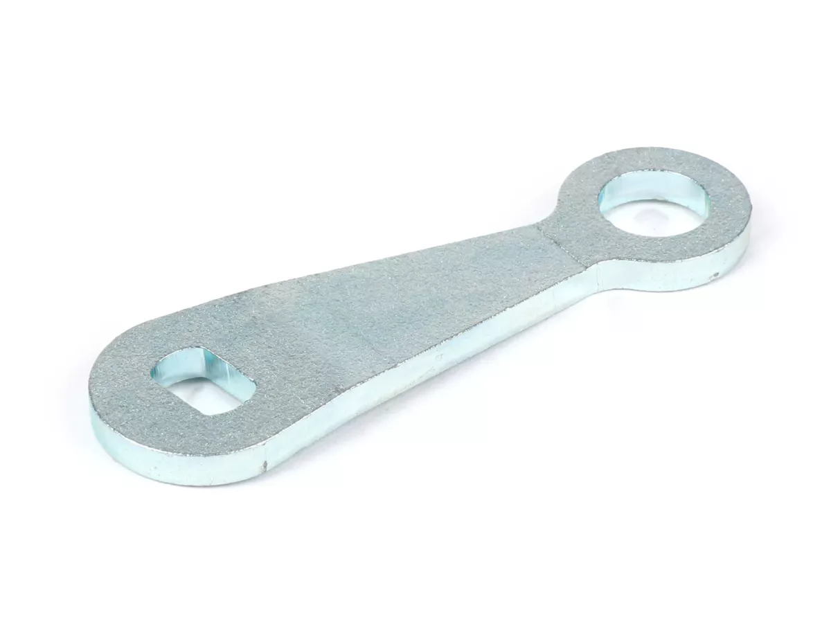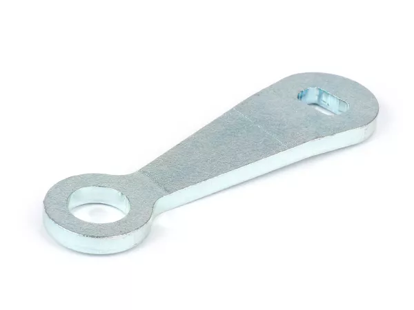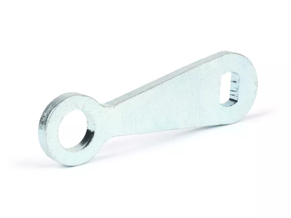 Der sogenannte Bremsarm sitzt auf der Bremsnocke. Er wandelt die geradlinige Zugbewegung des Bremszuges in eine Drehbewegung um.