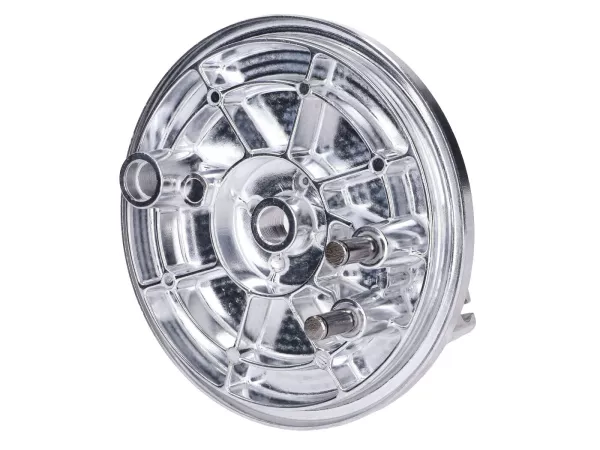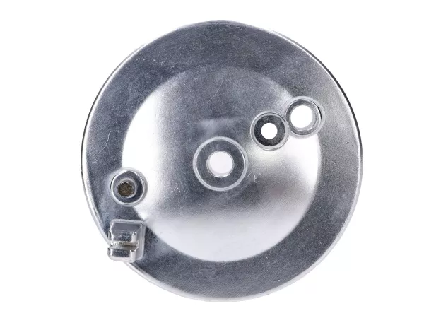 Bremsschild mit Bohrung für den Bremskontakt, hinten passend für Simson Kraftrad KR51/1 Schwalbe, KR51/2 Schwalbe, S50, S51, S70, SR4-1 Spatz, SR4-2 Star, SR4-3 Sperber oder SR4-4 Habicht.