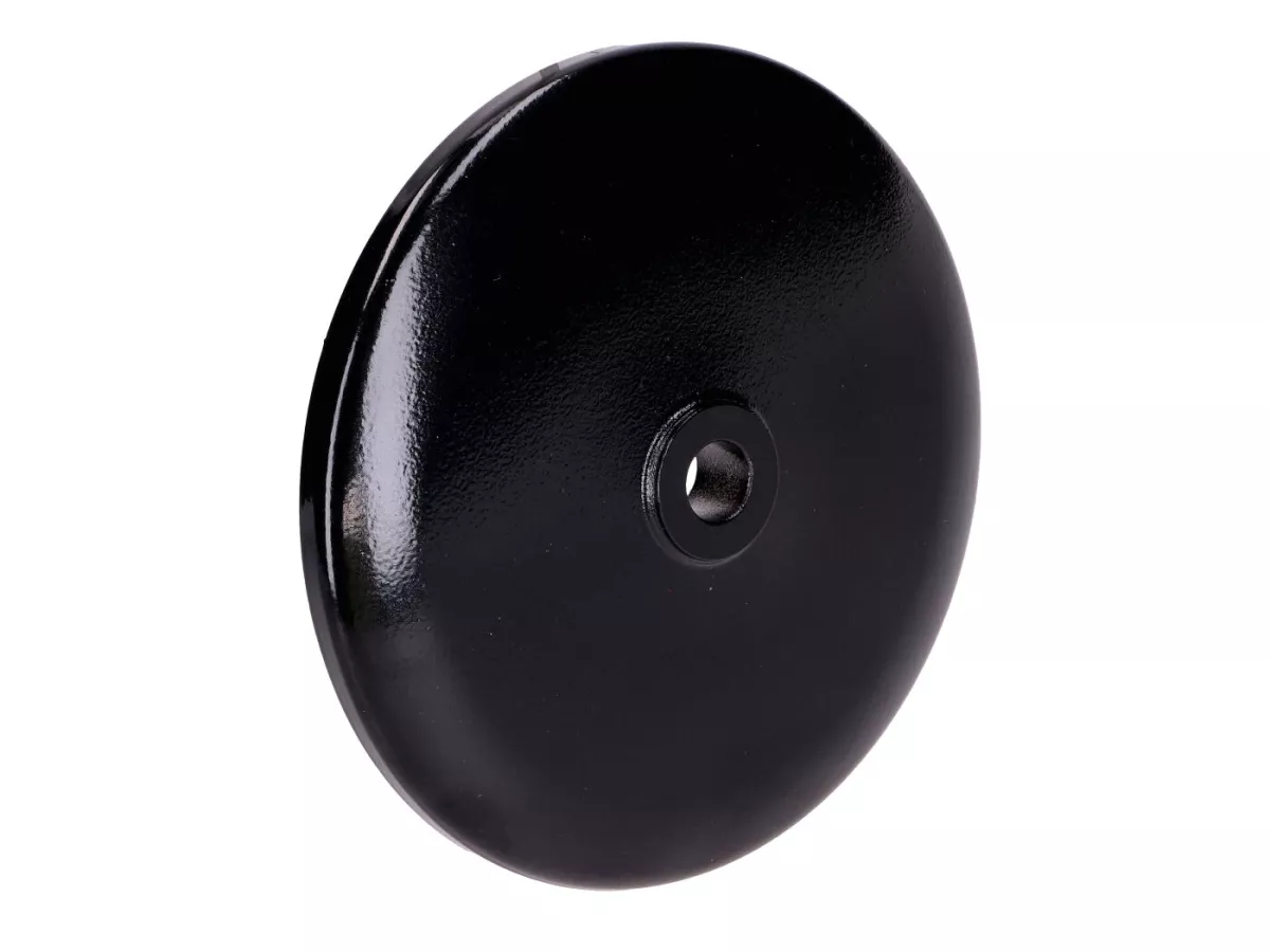 Schwarzer Deckel zur Montage an der vorderen Radnabe passend für Simson Kraftrad KR51/1 Schwalbe, KR51/2 Schwalbe, S50, S51, S53, S70, S83, SR4-1 Spatz, SR4-2 Star, SR4-3 Sperber, SR4-4 Habicht, SR50, SR80 oder Duo.