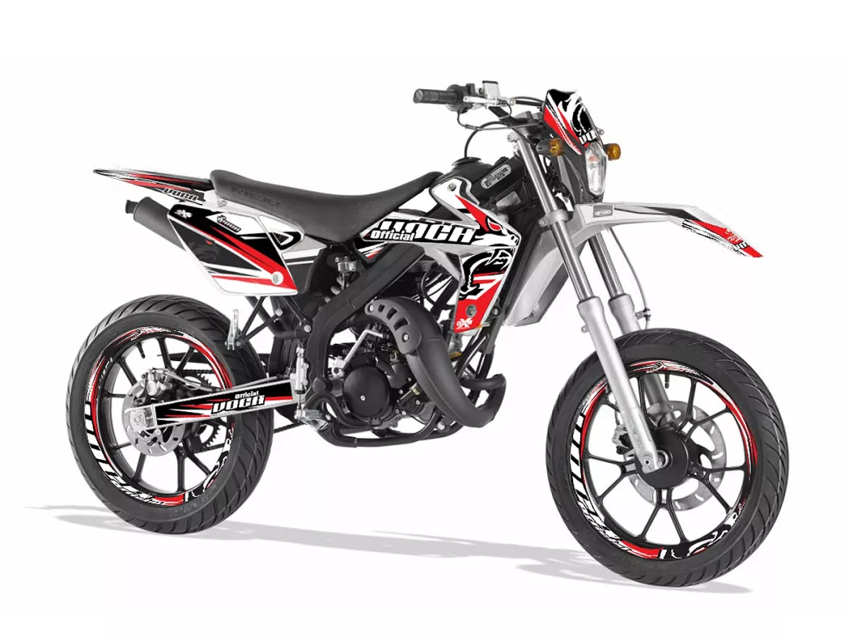 Kompletter und absolut hochwertiger Satz Dekoraufkleber / Decal Kit von Voca Racing in aggressiver Optik passend für Rieju MRT Modelle. Dieser Kit Aufkleber beinhaltet alle notwendigen Dekore für alle Verkleidungsteile inkl. Felgendekor für Supermoto. Das Felgendekor ist nicht passend für Enduro Modelle. Für Enduros ist nur das Verkleidungsdekor zu verwenden.