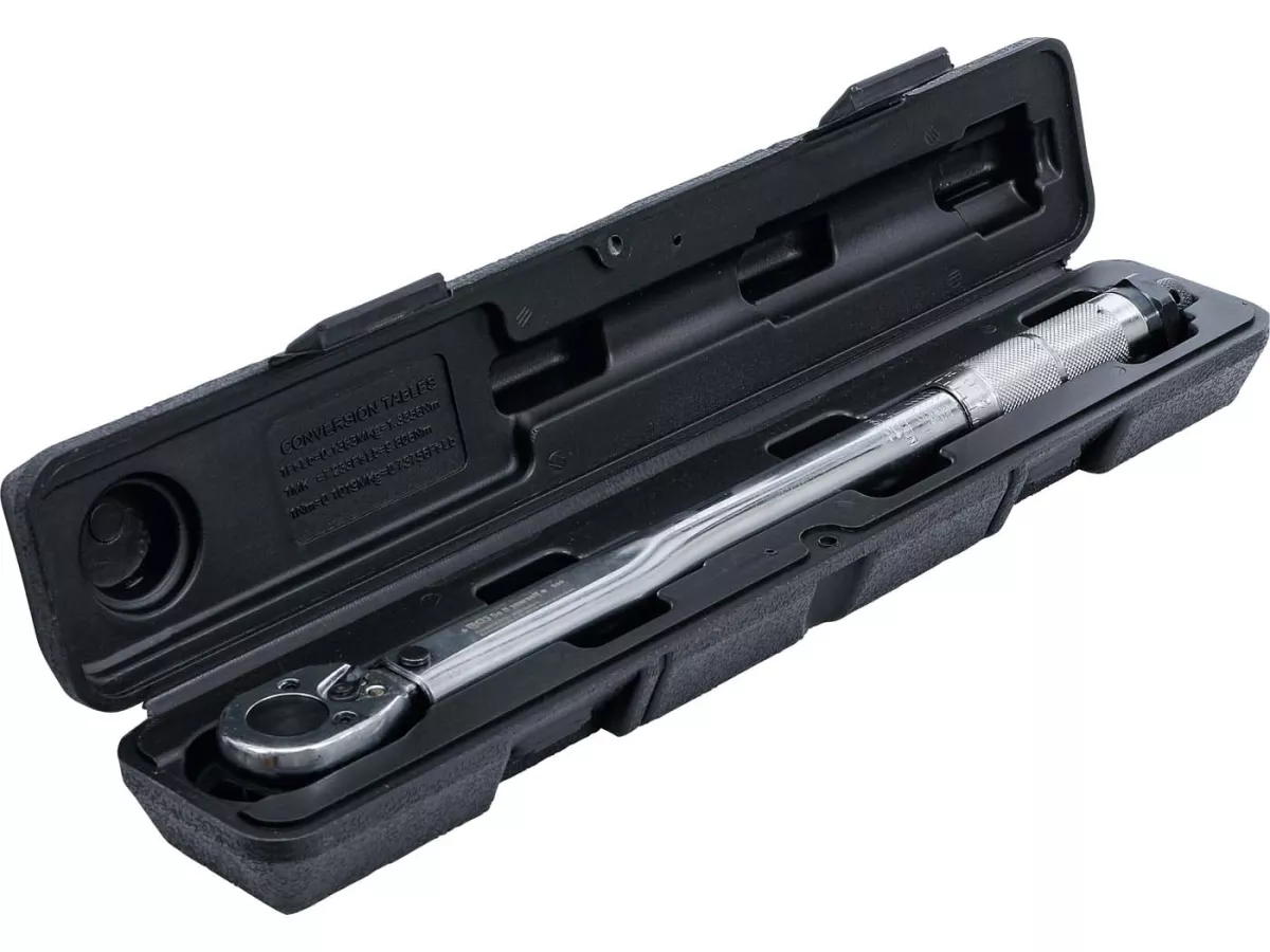 Dieser Drehmomentschlüssel (19–110 Nm) mit 3/8"-Antrieb sichert Verschraubungen mit Rechtsgewinde präzise.