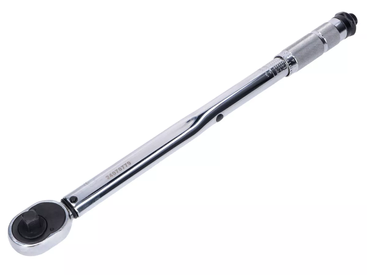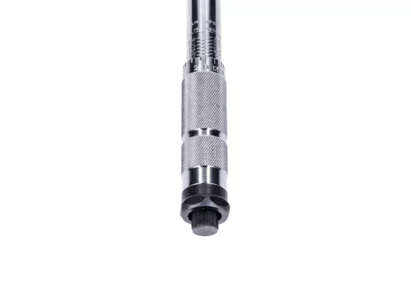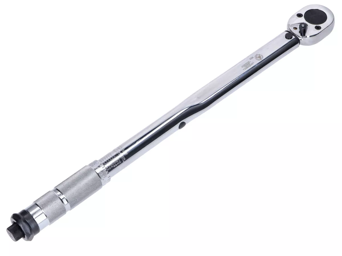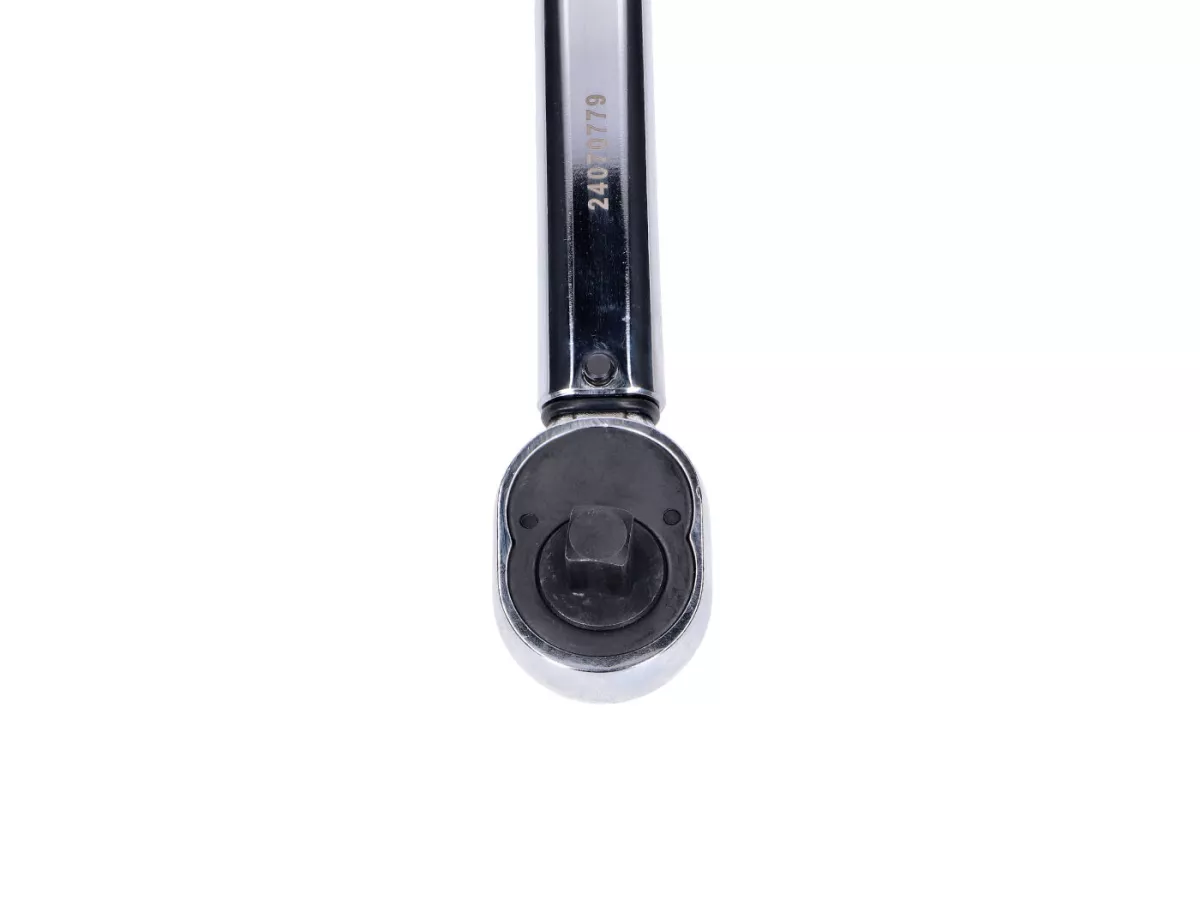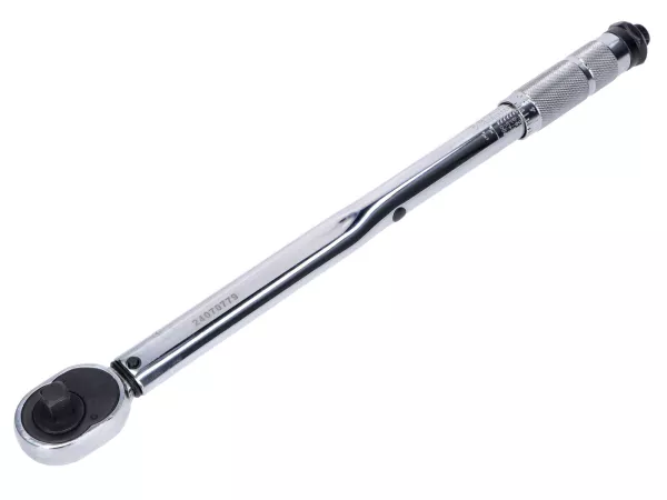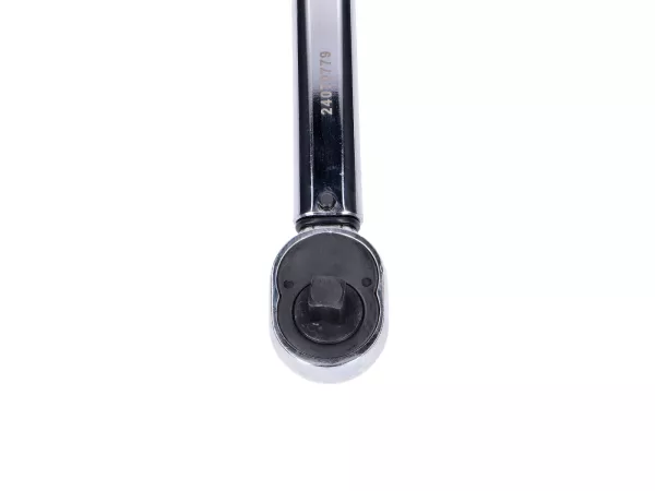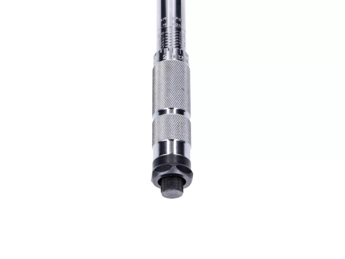 Drehmomentschlüsseßl mit 1/2-Zoll-Antrieb. Anzugsmoment im Bereich von 28Nm bis 210Nm. Links-Rechtslauf über Daumenschalter am Ratschenkopf umkehrbar. Stellgriff und Sicherungsring sind mit einer Rändelung versehen, um das Anzugsmoment rutschfrei einzustellen.
