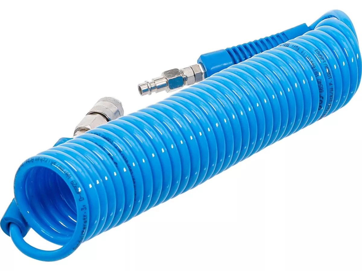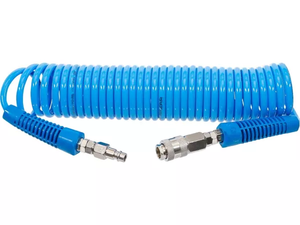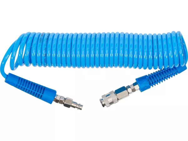 Dieser 6 Meter lange Druckluftschlauch ist aus widerstandsfähigem Polyurethan gefertigt. Er zeichnet sich durch einen Knickschutz an den Kupplungen sowie dreh- und austauschbare Kupplungsadapter aus.