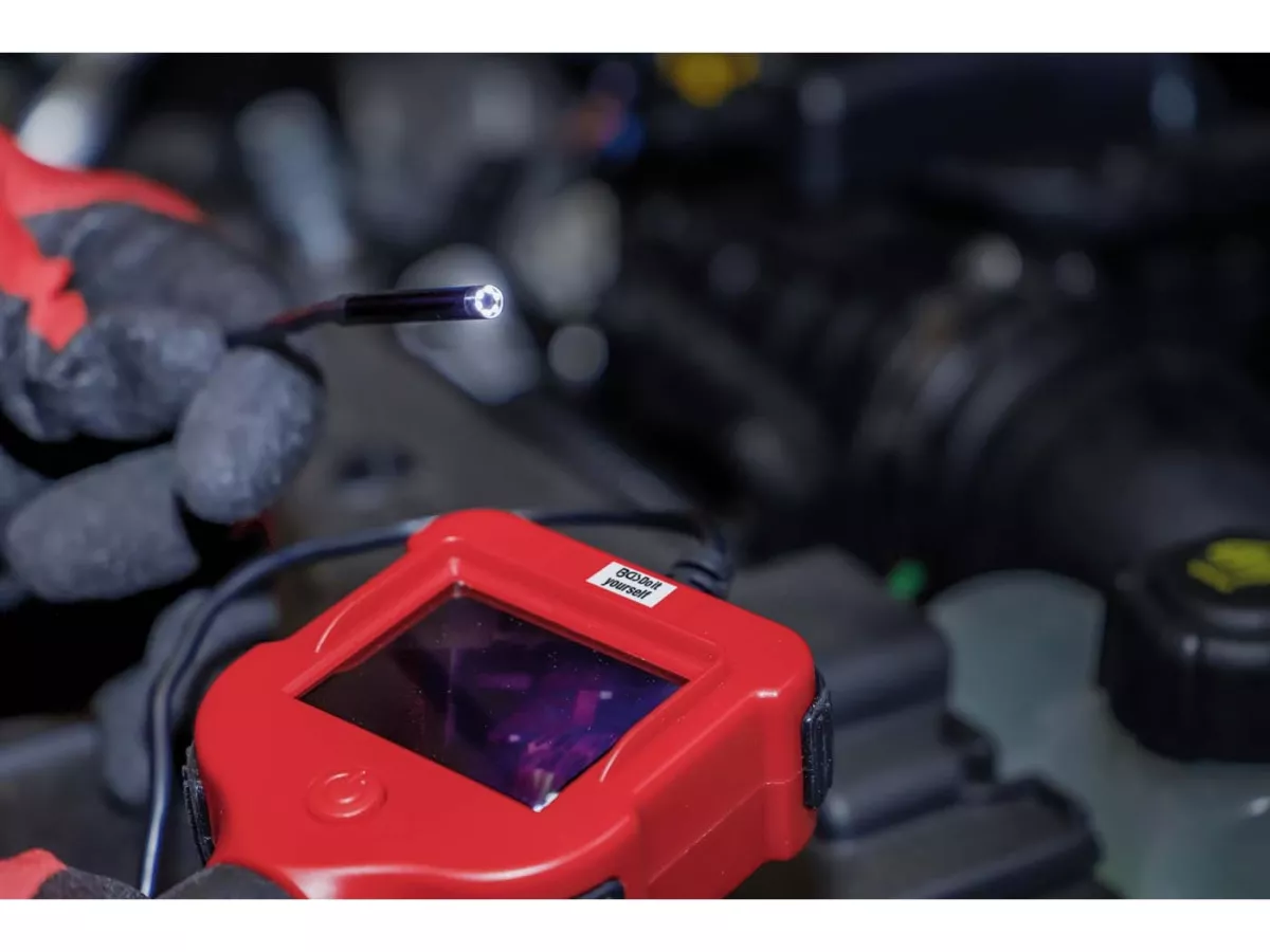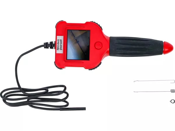 Dieses transportable und netzunabhängige Endoskop-System dient zur visuellen Inspektion von schwer zugänglichen Hohlräumen. Es verfügt über eine Farbkamera mit einem kleinen Kamerakopf (Ø 5,5 mm), der an einem biegsamen Schwanenhals befestigt ist. Die Kamera ist mit sechs LEDs beleuchtet, um eine klare Sicht zu gewährleisten. Die Echtzeit-Videos der Inspektion können unmittelbar auf dem integrierten Farb-TFT-Monitor betrachtet werden. Das netzunabhängige Design sorgt für optimales Handling an jedem Einsatzort. Im Lieferumfang sind außerdem nützliche Zubehörteile wie Magnet und Haken enthalten.