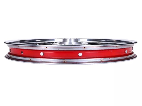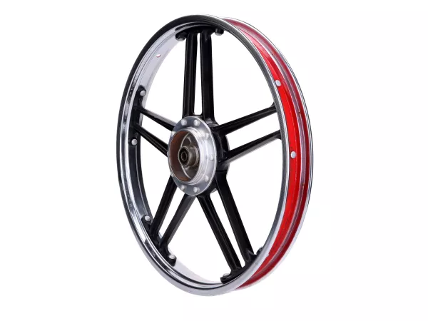 Original Kreidler / Rigida Felge aus Aluminium für das Vorderrad passend für Kreidler MF 2, Flory MF32, MF20 und MF22 Mofa, Moped. Verbundrad-Felge mit schwarzen Streben im 5-Stern Design.