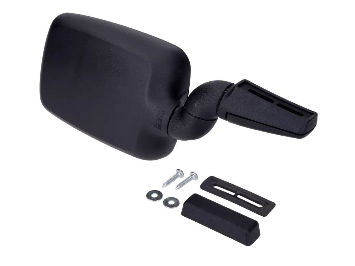 Universeller Spezialspiegel von Busch & Müller mit Verkleidungsbefestigung für die rechte und linke Seite. Der Spiegel ist unter anderem passend für Zündapp, Kreidler, Hercules, Sachs, Moped und Mofas mit Polybauer MBV Verkleidung oder anderen Verkleidungen.