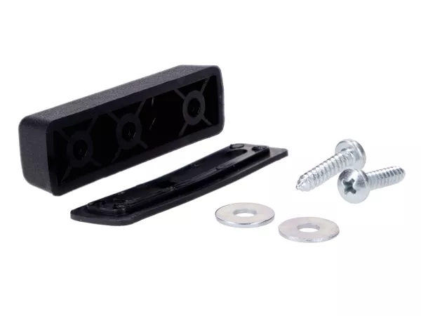 Die Montage erfolgt über einen robusten Kunststoffarm mit drei Gelenken. Der Fuß verfügt über zwei Befestigungspunkte und wird mit einer Schrauben-Gegenschraubplatte befestigt. Es sind die Lochabstände 18,5mm, 26,5mm oder 45mm wählbar.