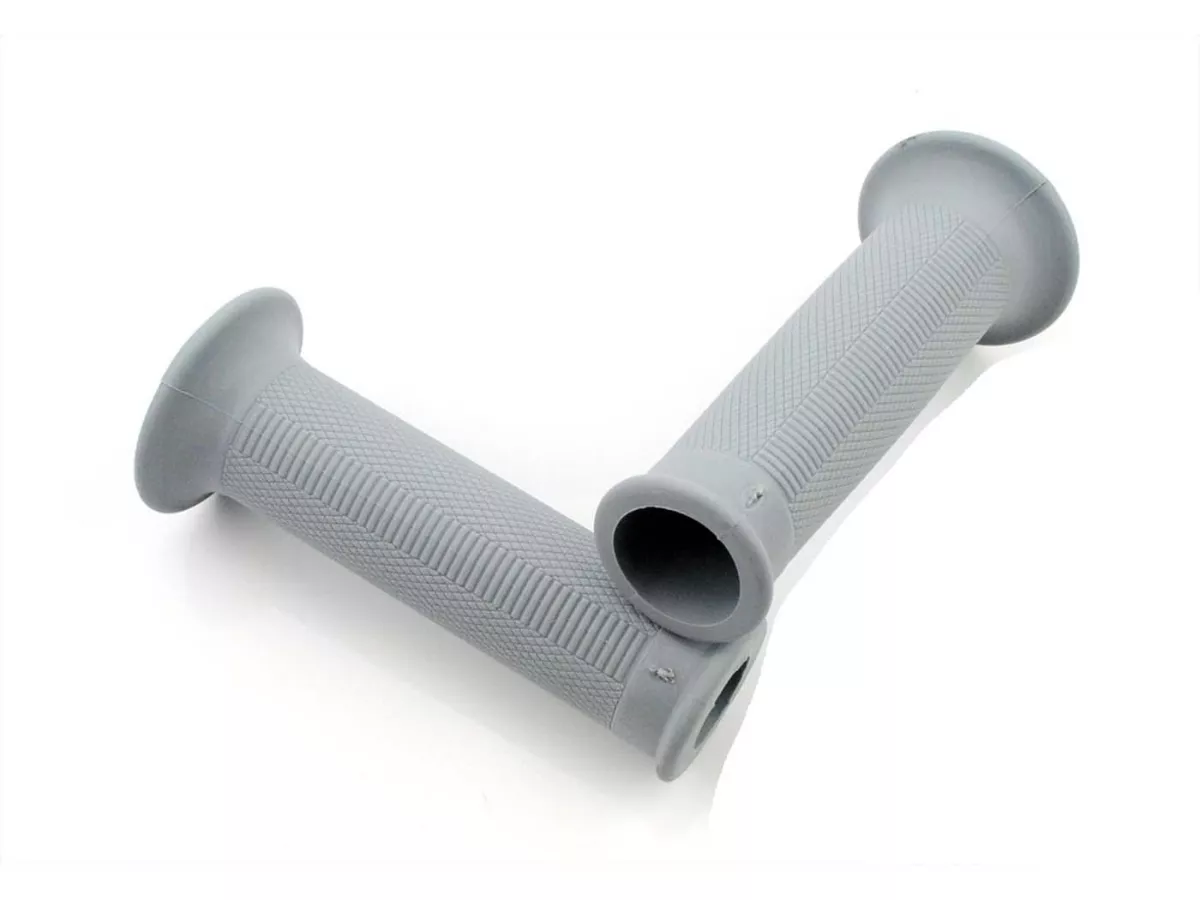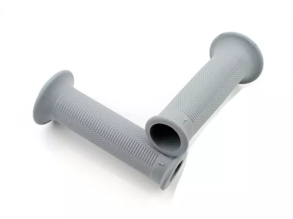 Griffgummi Satz hergestellt in Deutschland, passend für Simson KR51/1, KR51/2, SR4-2, SR4-3, SR4-4 sowie MZ ES, ES175, ES175/2, ES250, ES250/2. Maße: Breite ca. 120mm, Innendurchmesser 20/26mm, außen offen.