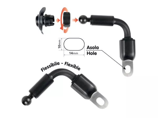 Lampa Opti Arm flexible Halterung mit 10x14mm Öse für Handy oder Smartphone zum Anschluss / zur Befestigung für das Smartphone-Etui am Spiegel / an der Spiegelschraube.