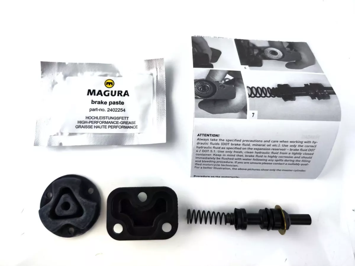 Magura Handbremspumpen Reparatur Satz mit 16mm Kolben, passend für Magura Modell 280 Bremspumpen mit 16mm Kolben. Kompatibel mit Zündapp GTS 50, C 50 Sport, KS 50, KS 80, Kreidler Florett RMC RS, Hercules K 50, Ultra, KX, RX, XE, ZX.