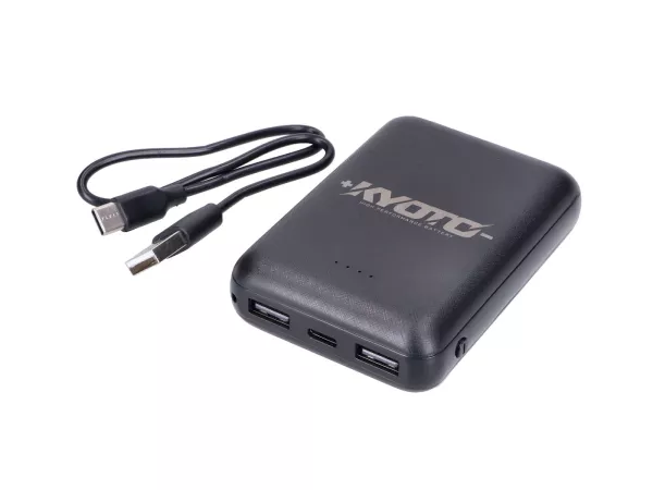 - Powerbank an den USB-Anschluss in der Innentasche anschließen und Powerbank einschalten