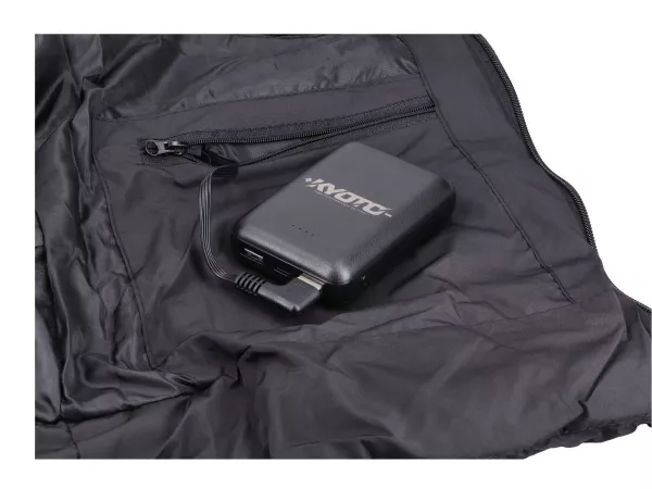 Beheizbare Weste "Magma" von Eight in Schwarz - inklusive 10.000mAh Powerbank.