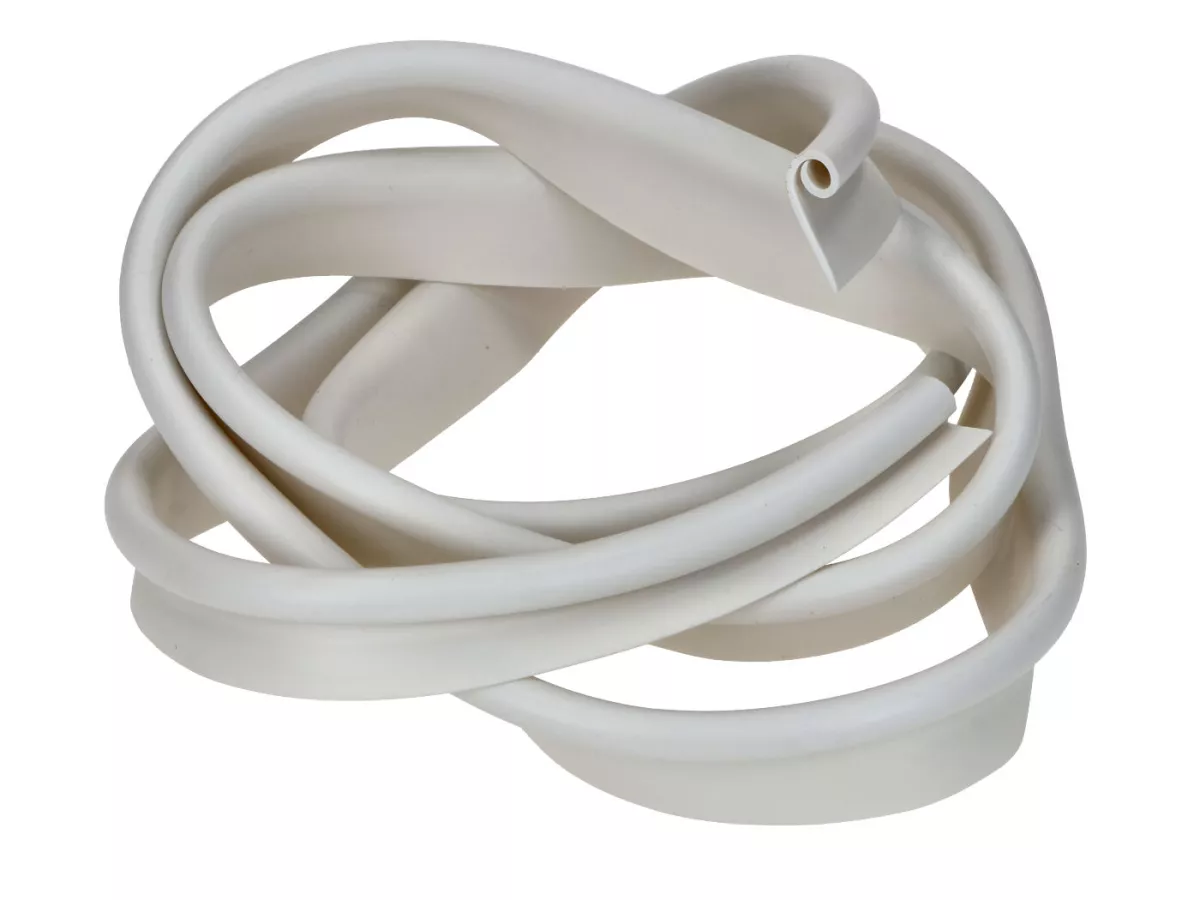 Drilastic Motordeckel Keder Satz in Weiß, hergestellt in Deutschland, passend für Kreidler Florett K 53, Florett Eiertank K 54/0M, Florett Super 4 Mokick, Florett Super 5 TS, Florett GT, Florett TM, Florett LF, LH ab Baujahr 1956. Teile Nr. 47.03.02. Länge des Keders ca. 1600mm, ausreichend für beide Seitendeckel und wird am Fahrzeug zugeschnitten.