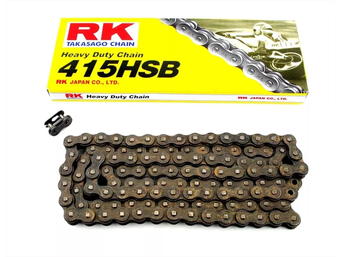 RK Kette Typ 415 mit 114 Gliedern, passend für Zündapp Super Combinette Typ 429, 433, Sport Combinette Typ 510, 515, C 50 Super Typ 441, CS 25 Typ 448-140 und 448-141, C 50 Sport Typ 529-010, Mofa Moped Mokick, Automatic Mofa Typ 442-12 L0, 442-16 L0, Rixe Libelle F, Falconette Typ 510 KS 75 KS 50 KS 50 Super SL, Victoria Nicky R 50 Kleinroller, Automatik Moped Typ 442-16, C 50 Super Typ 441-01, C 50 Typ 517-21. Vergleichsnummer 429-18.640.14. Inklusive Kettenschloss.