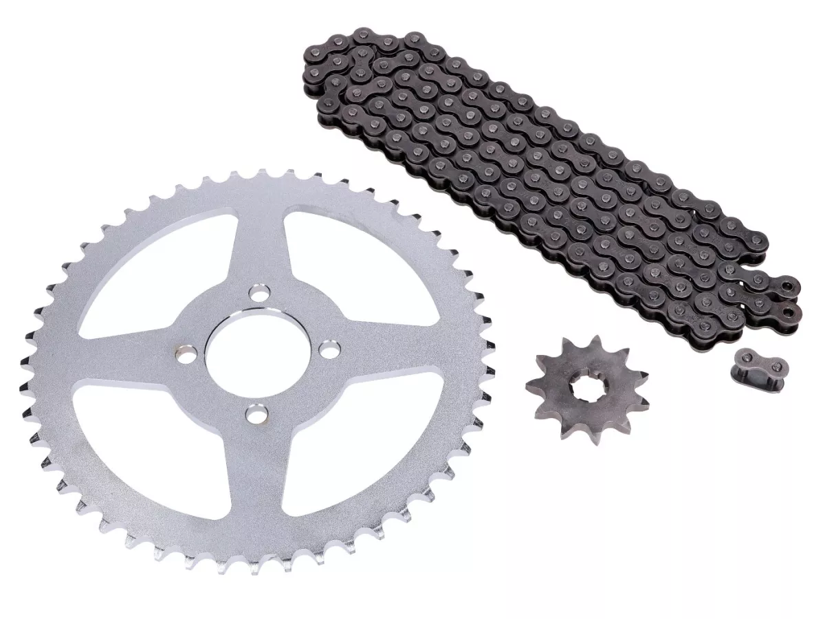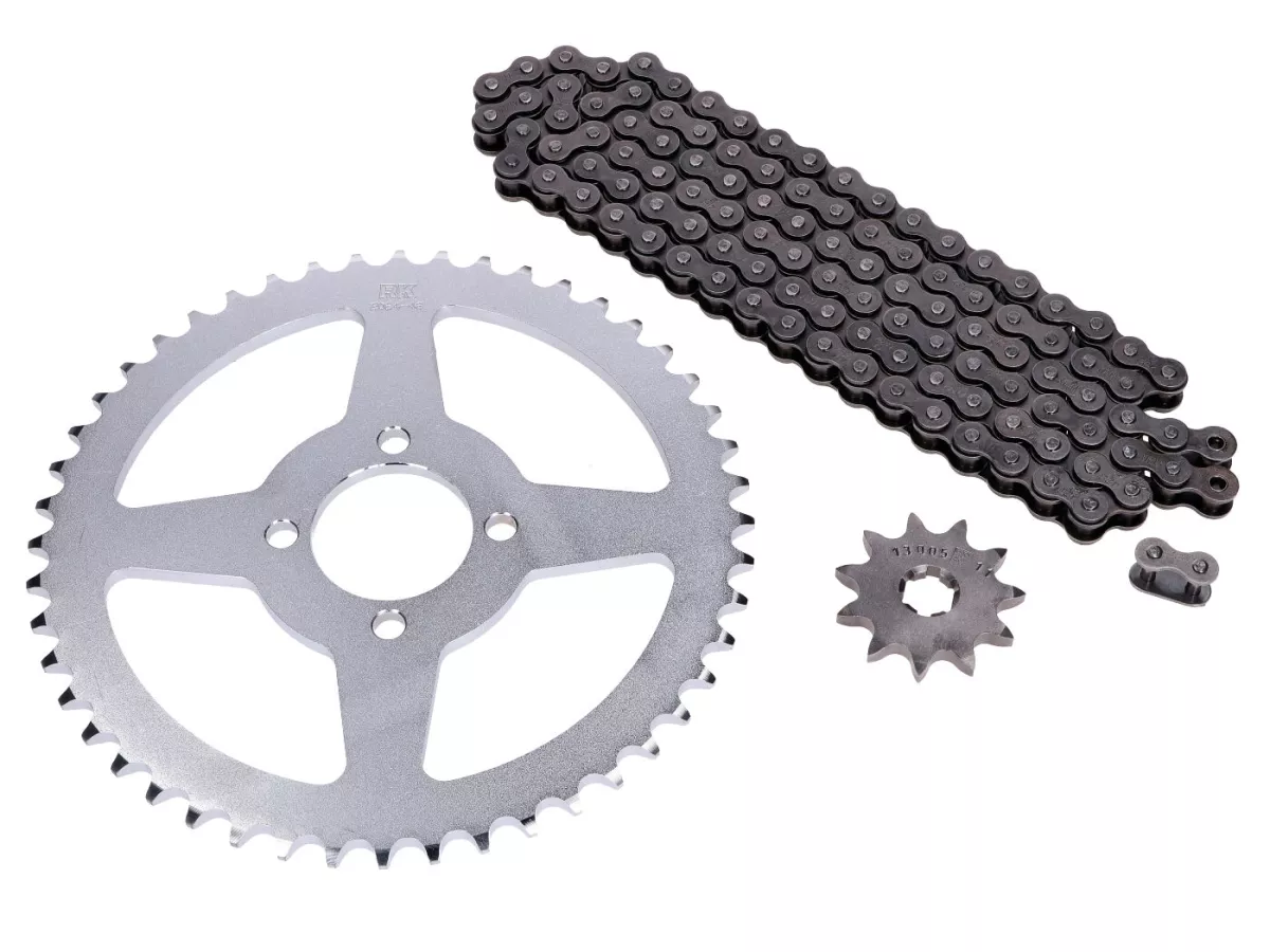 Kettensatz bestehend aus 11er Esjot Ritzel, 48er Afam Kettenrad und 110 Glieder DID Kette, Teilung 420 passend für Yamaha DT 50 MX Bj. 1980 bis 1986.