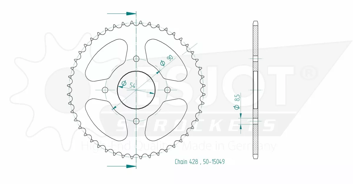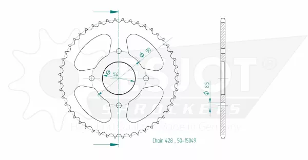 Verstärkter 3-teiliger Esjot Kettensatz in Top Qualität, hergestellt in Deutschland beim Erstausrüster von Hercules / Sachs, passend bei Hercules K 180 BW in Straßen Übersetzung für überwiegende Straßen Nutzung. Enthält 14er Esjot Ritzel, 42er Esjot Kettenrad und 112er Esjot Kette. Konische Aufnahme: 23 x 24mm, für Kettentyp 428 - 1/2 x 5/16. Das Maß zur Aufnahme unbedingt vor dem Kauf kontrollieren. Made in Germany.