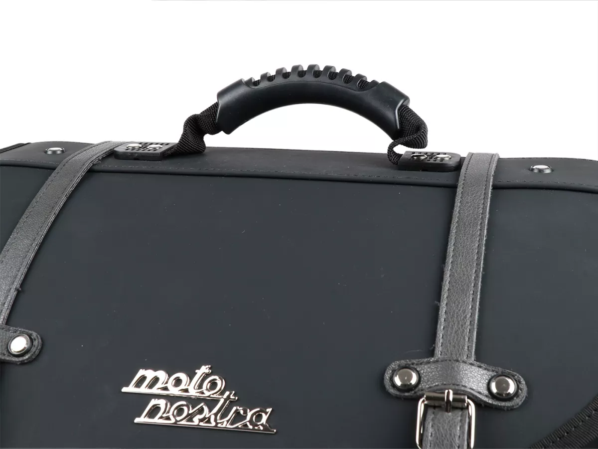 Die große Moto Nostra Classic Koffertasche ist die ideale und stilvolle Alternative zum normalen Hartschalen Top Case. Sie bietet überraschend viel Stauraum bei kompakten äußeren Maßen.
