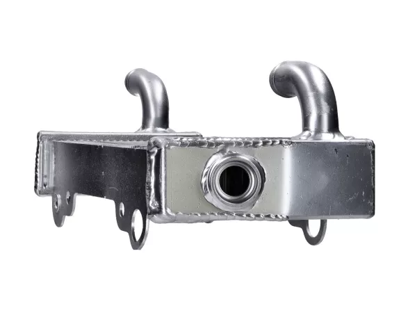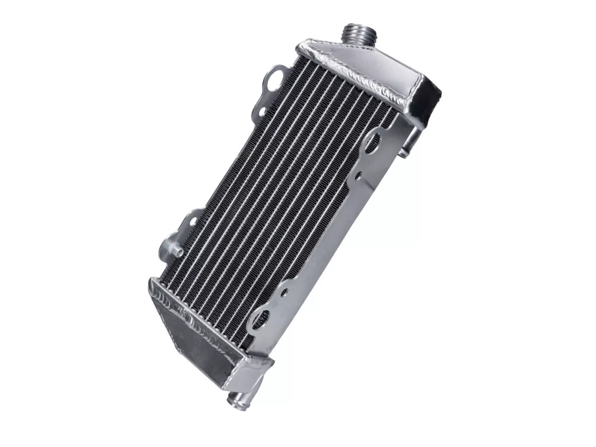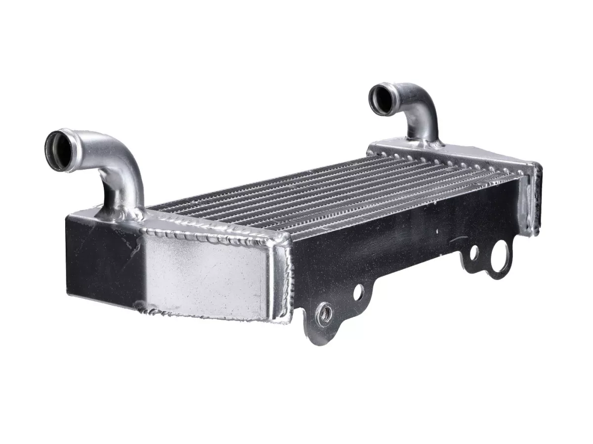Handgefertigter Kühler aus Aluminium als Ersatzteil mit D=16mm Schlauchanschlüssen passend für Rieju MRT 50 Euro4, Euro5 Schaltmopeds.