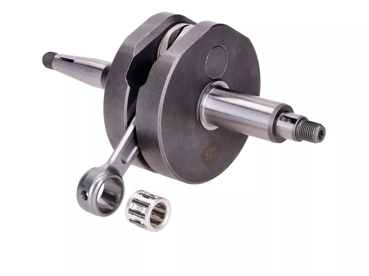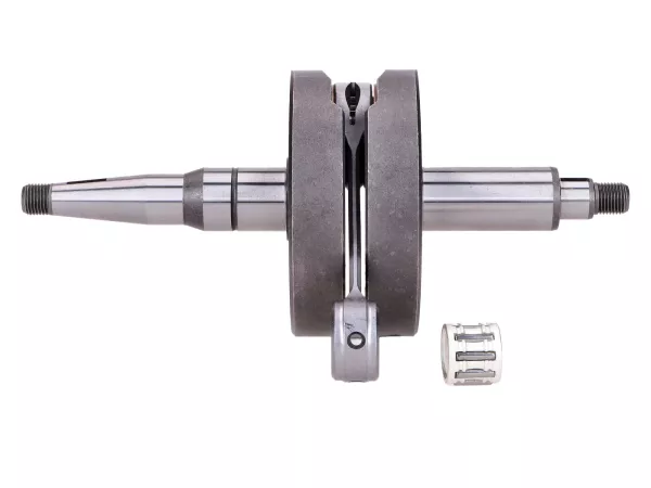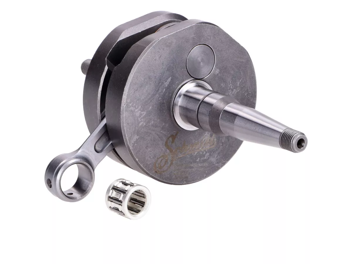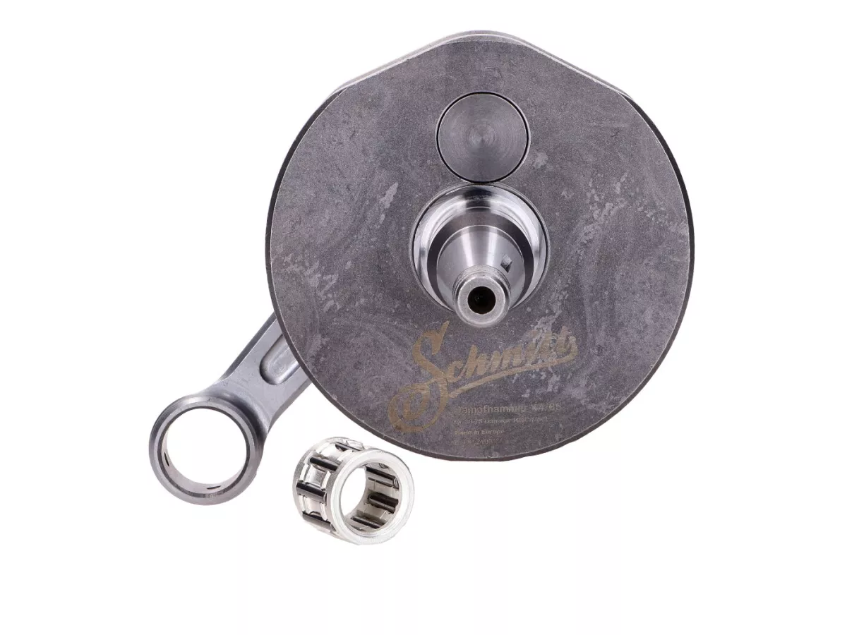 Kurbelwelle Schmitt "Dampfhammer" für Rennsport und Motoren mit hoher Spitzenleistung. Diese Premium Kurbelwelle hat 44mm Hub und ein 85mm CNC bearbeitetes Schmiedepleuel. Schmitt definiert den Einsatzbereich dieser Kurbelwelle auf Motoren ab 50-75ccm Hubraum passend für Simson S51, S70, S83 mit M500, M700 Motorgehäuse.