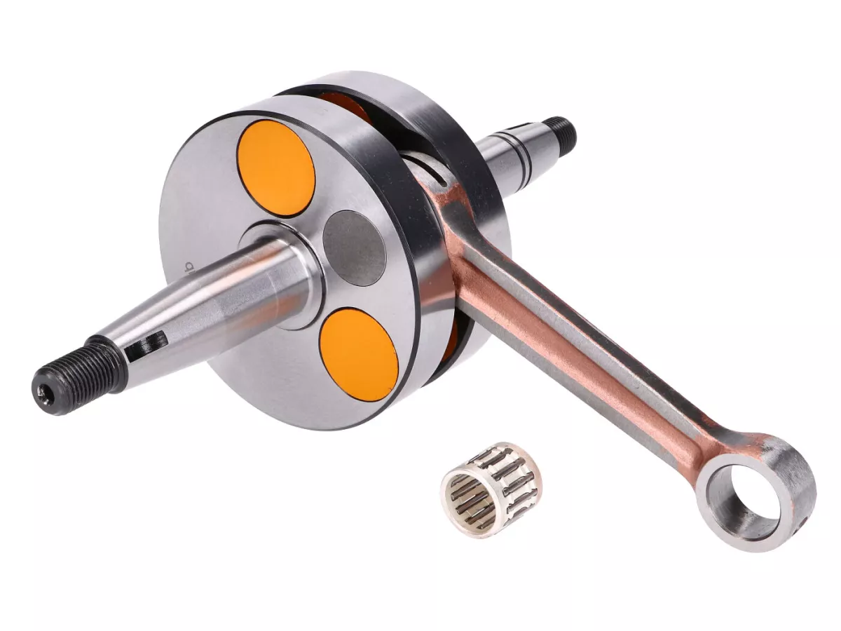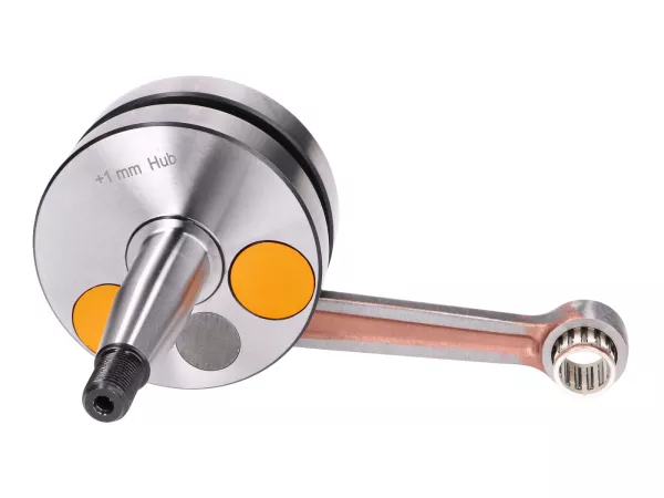 Diese spezielle Vollwangen-Kurbelwelle hat 1 mm mehr Hub als die Originalkurbelwelle. Der Motor erhält dadurch mehr Drehmoment, eine höhere Verdichtung und mehr PS. Es handelt sich also um eine hochwertige Racing Kurbelwelle für den Einsatz in Motoren mit hoher Leistungssteigerung.