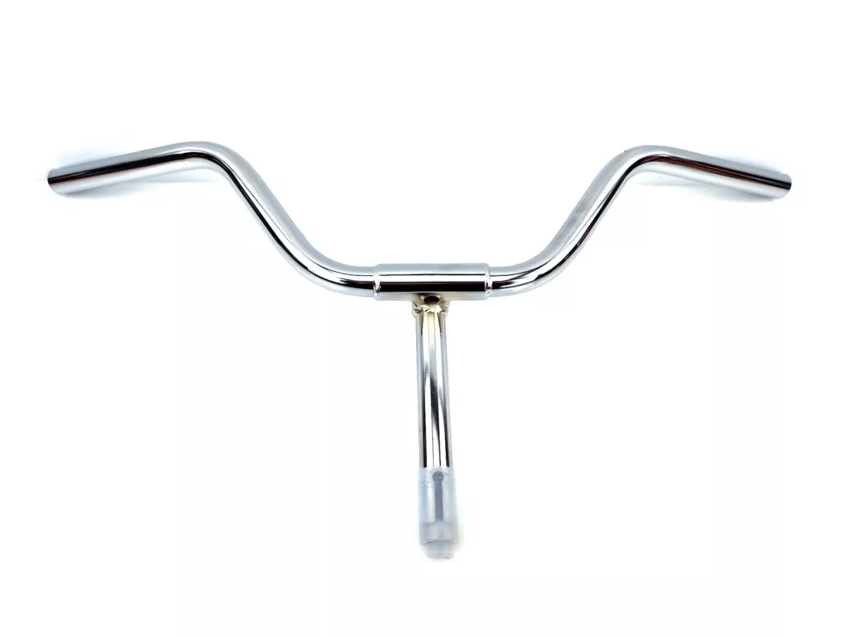 Chrom Lenker mit Vorbau für verschiedene Moped Mofa Mokick wie Rixe, Miele, DKW, Hercules, Göricke, Gritzner, Transportmoped, Express. Maße: Durchmesser 22mm, Befestigungsdurchmesser Halterohr ca. 22mm, Breite ca. 630mm, Höhe ca. 120mm, Kröpfung nach hinten ca. 70mm. Maße vor dem Kauf prüfen.