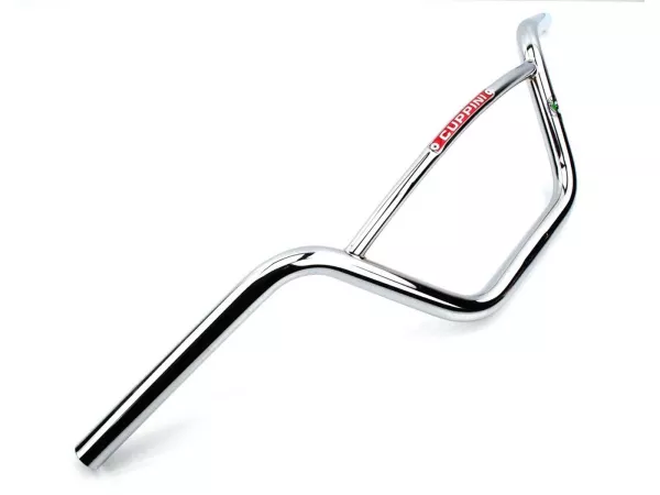 Chrom Lenker mit Strebe in Top-Verarbeitung und Qualität der Firma Cuppini, hergestellt in Italien. Kult-Klassiker für Zündapp, Kreidler, Hercules, Puch und viele andere. Maße: Breite 680 mm x Höhe 150 mm. TÜV-Gutachten Typ 337, Download-Medien verfügbar.