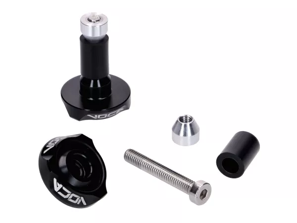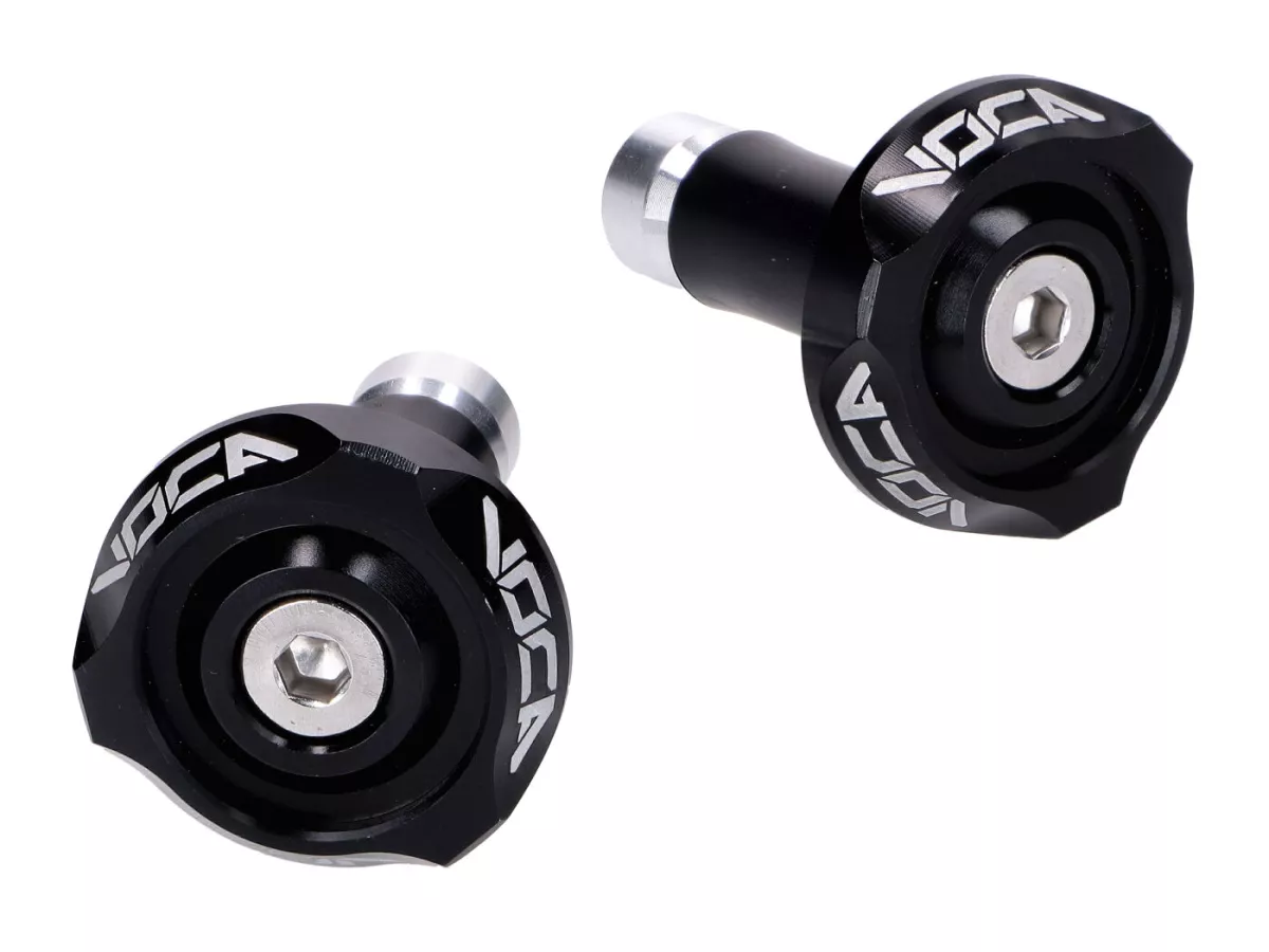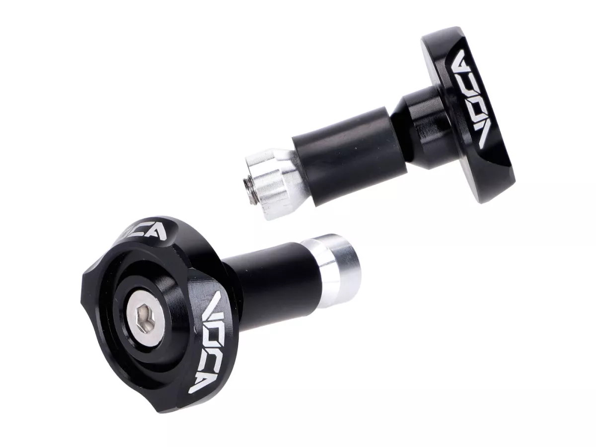 Vibrationsenddämpfer von Voca Racing als Version 2 in neuem Design. Passend für alle Lenker mit 14mm Innendurchmesser. Die Lenkerendkappen bestehen aus CNC-gefrästem und schwarz eloxiertem Aluminium mit lasergravierten Voca-Logos.