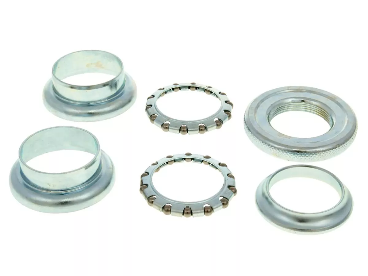Komplettes Lenkungslagerset zum Austausch bei verrosteten oder rastenden Lenkungslagern / Steuerkopflagern. Defekte Lenkungslager schränken die Lenkpräzision erheblich ein, worunter die Fahrsicherheit leidet.