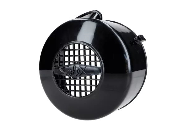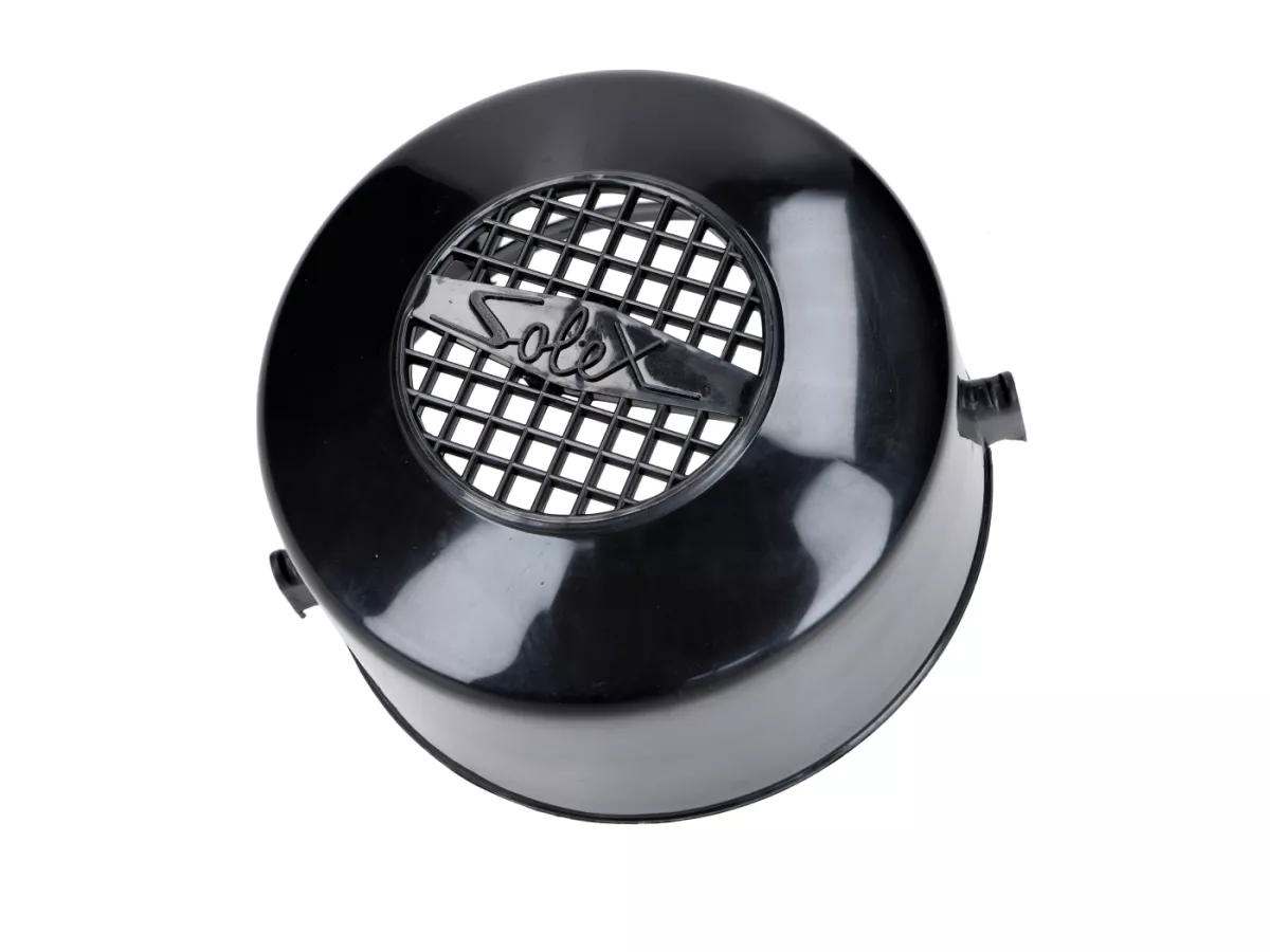 Robuste Lüfterabdeckung bzw. Lichtmaschinendeckel in schwarzer Ausführung, passend für Velo Solex 1700, 2200, 3300 und 3800. Die Abdeckung schützt das Schwungrad bzw. die Lichtmaschine vor Schmutz und Beschädigungen und unterstützt zugleich die saubere Luftführung im Motorbereich. Ideal als Ersatz bei beschädigten, gerissenen oder optisch abgenutzten Originalteilen.