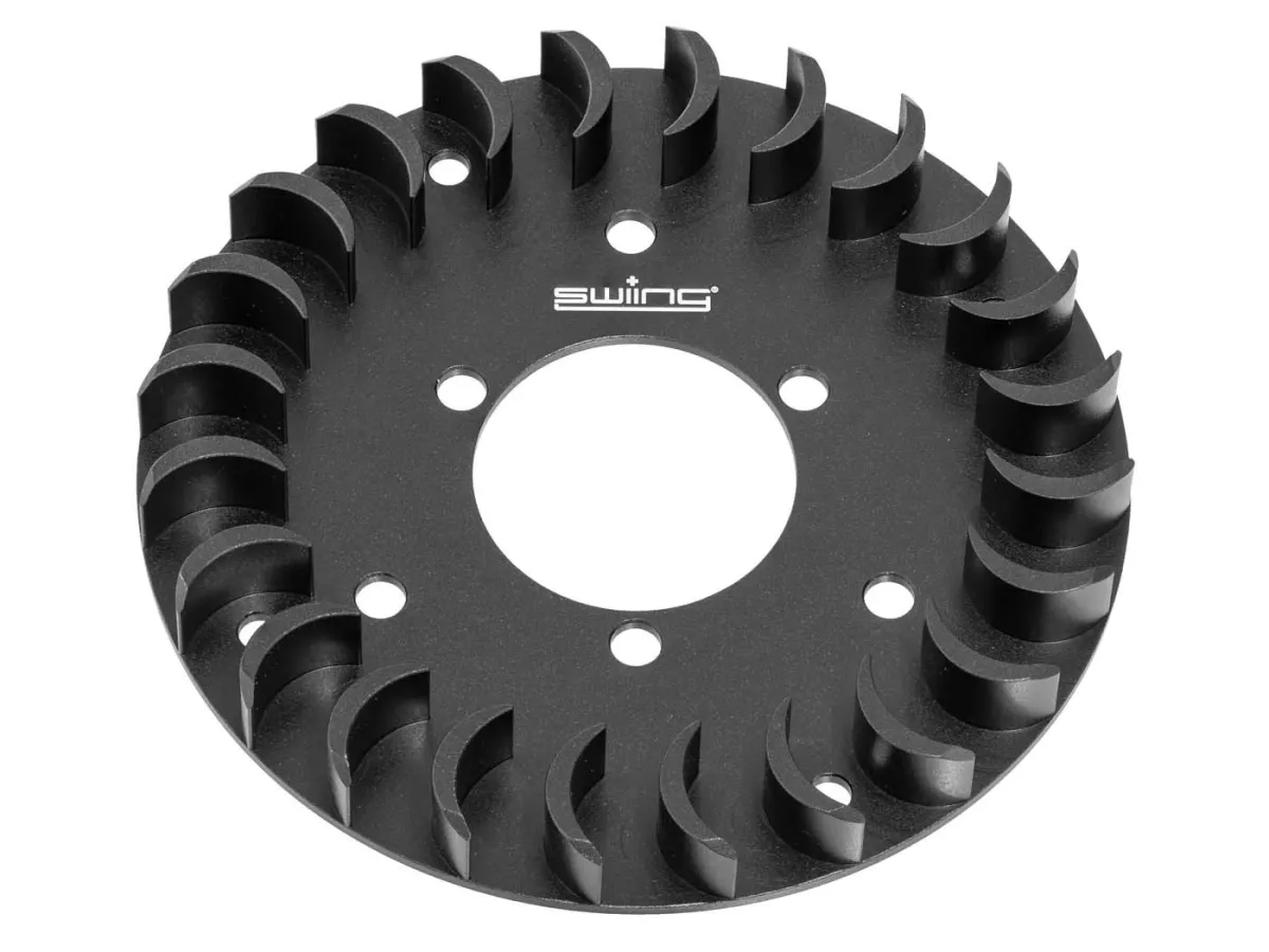 Aufgrund der verschiedenen Lochkreise kann das Lüfterrad wahlweise an Bosch / Ducati, swiing ingenious EVO und HPI Schwungräder montiert werden.