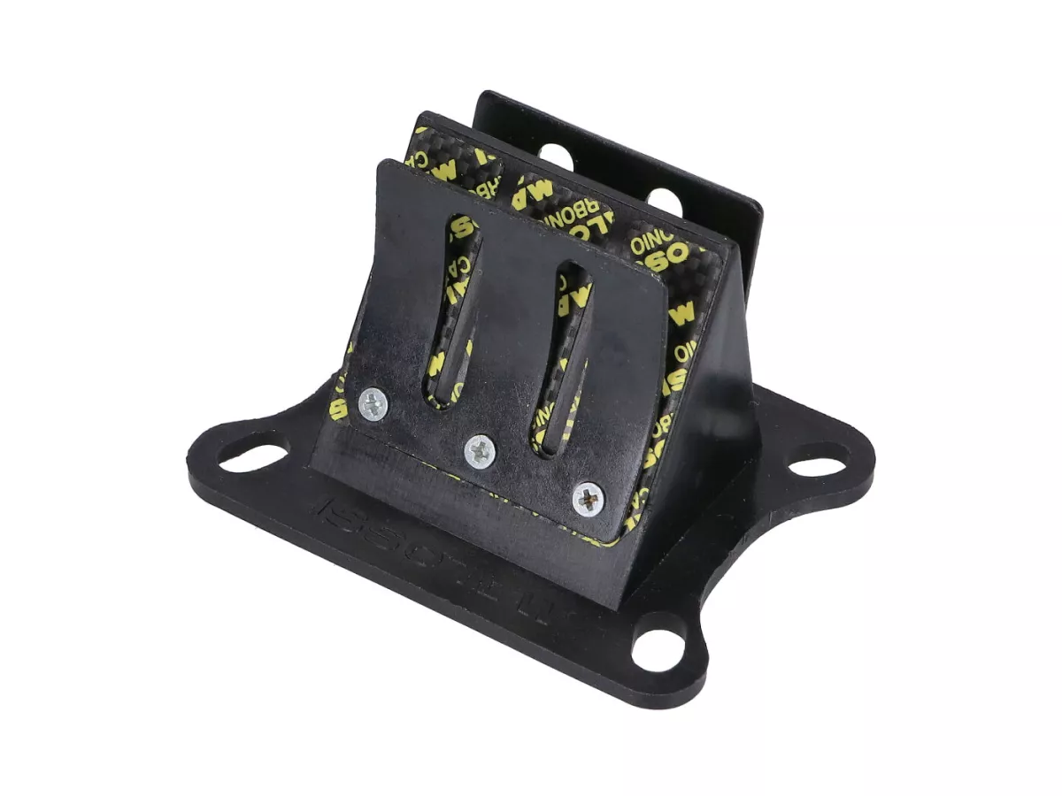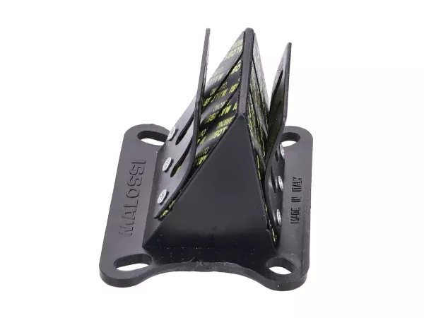 Racing Membranblock Malossi VL5 für Honda MTX 80 2T LC, Yamaha DT MX 80 und Umbauten mit MTX Zylinder wie z. B. Simson. Membranblock mit Lamellenventil, entwickelt und neu konzipiert mit neu berechnetem Durchsatzquerschnitt und Flusswinkel. 0,3mm Plättchen aus Kohlenstofffaser-Verbundmaterial. In fortschrittlichem Produktionsverfahren unter Verwendung streng ausgewählter Rohstoffe hergestellt, für Rennmotoren entwickelt, auf Rennstrecken getestet.