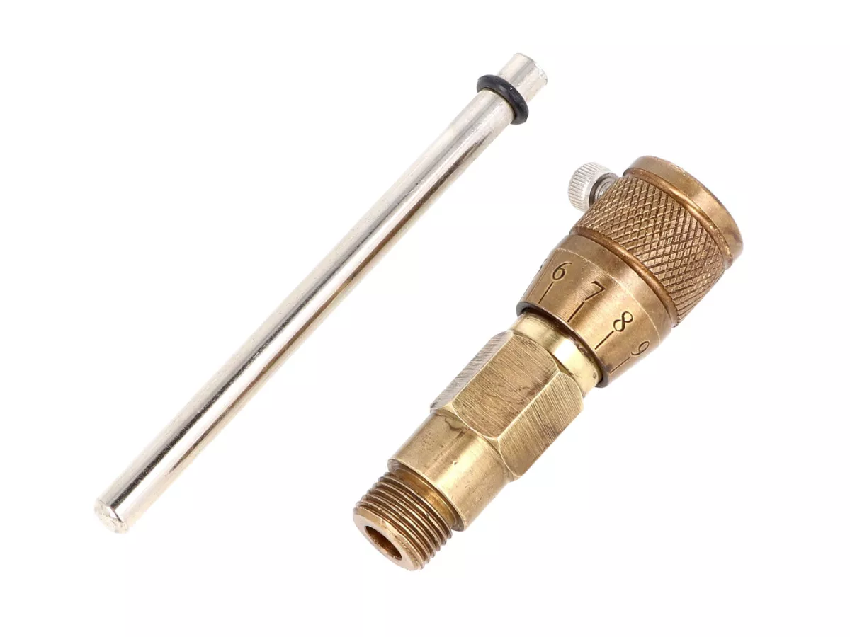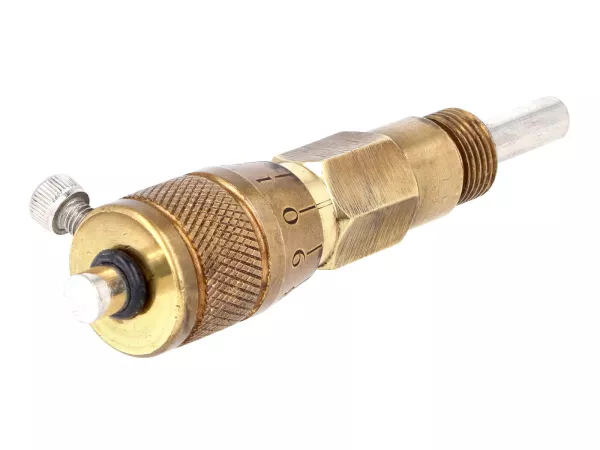 Mit Hilfe dieser Mikrometer-Messschraube lässt sich der OT / obere Totpunkt des Kolbens ermitteln und ermöglicht so ein präzises Einstellen des Zündzeitpunktes. Eine bereits minimal verstellte Zündung kann Leistungseinbußen oder Startschwierigkeiten zur Folge haben.