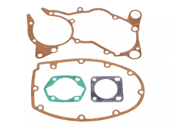 Ein 4-teiliger Athena Motor/Zylinder Dichtsatz bestehend aus Zylinderkopfdichtung, Zylinderfußdichtung, Gehäusemitteldichtung und Kupplungsdeckeldichtung für eine Zündapp M 50/25 Typ 434 Bergsteiger in Top Qualität. Hergestellt in Italien und einem Dauertest über 3400 km unterzogen, um höchste Qualität zu gewährleisten.