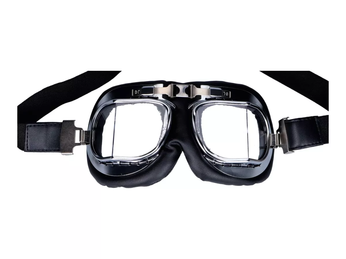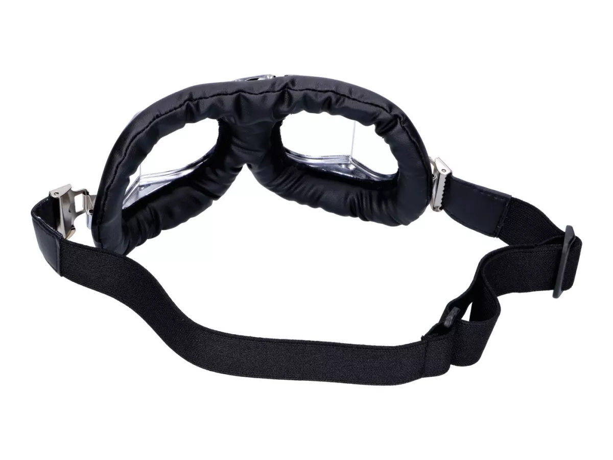 Classic Brille Flight im kultigen Design für Motorrad, Moped, Oldtimer . Sehr gute Passform durch Einsteller am Haltegummi sowie in der Mitte zwischen den Augen. Komfortabler Sitz durch Schaumstoff Einfassung. Gläser sehr leicht getönt.