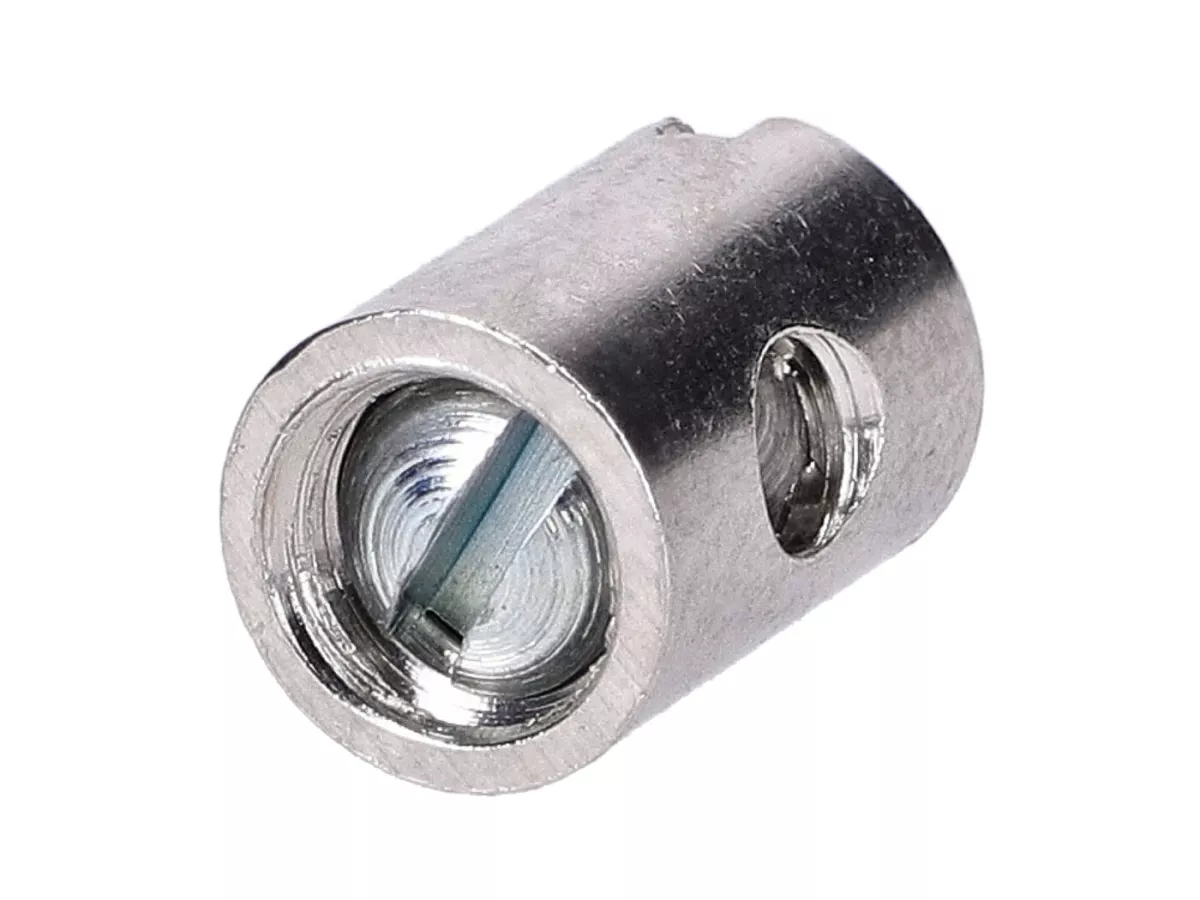 Gaszug Schraubnippel, passend für viele Mofa, Moped, Mokick und KleinkraftradModelle wie Zündapp, Kreidler, Hercules, Puch. Maße: 5 x 7mm. Verfügbar als Einzelstück oder im Satz zu zwei Stück.